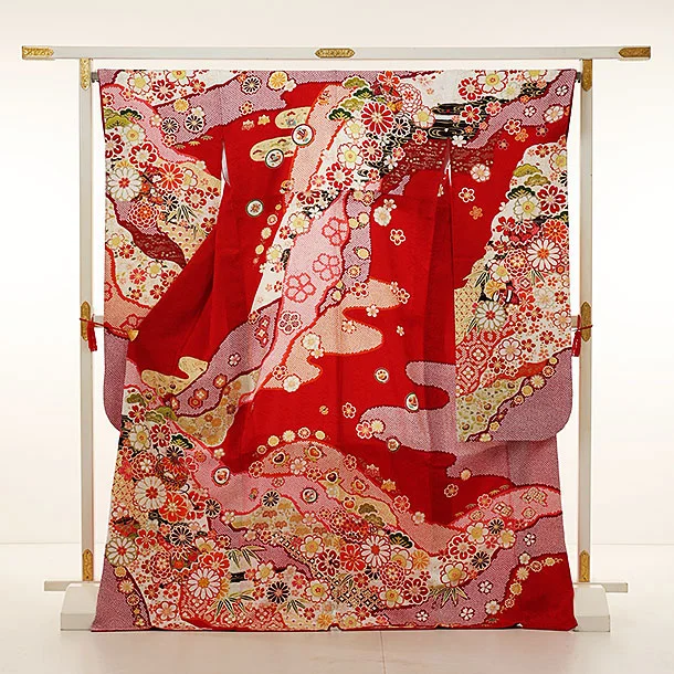振袖レンタル1130【高級振袖】赤地桜道長鞠