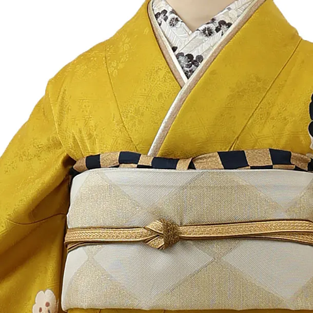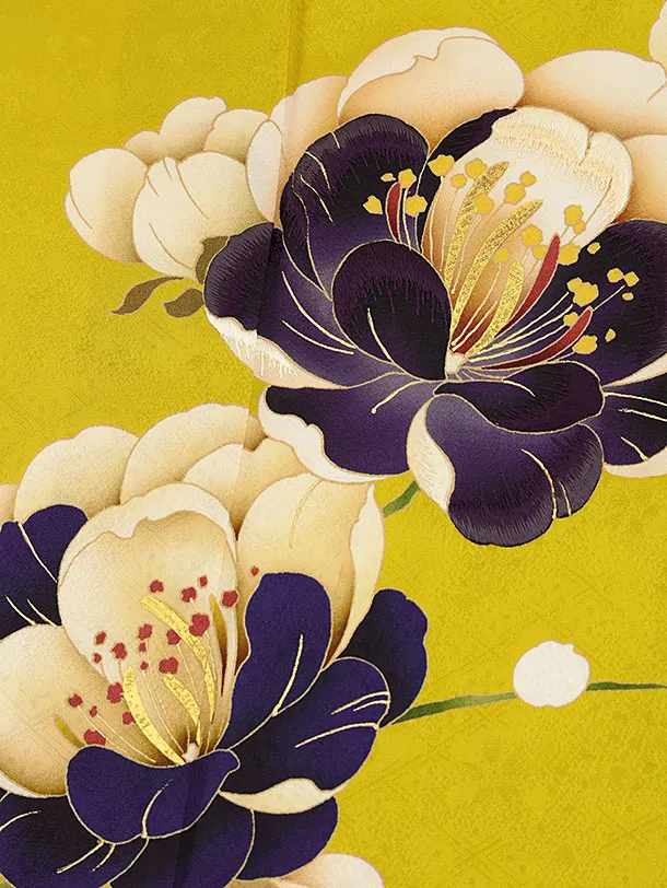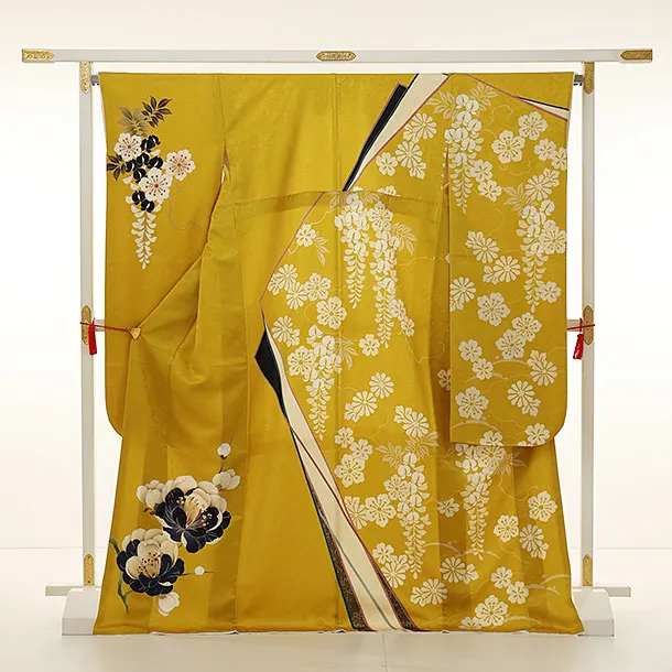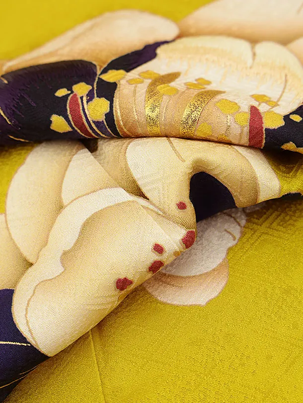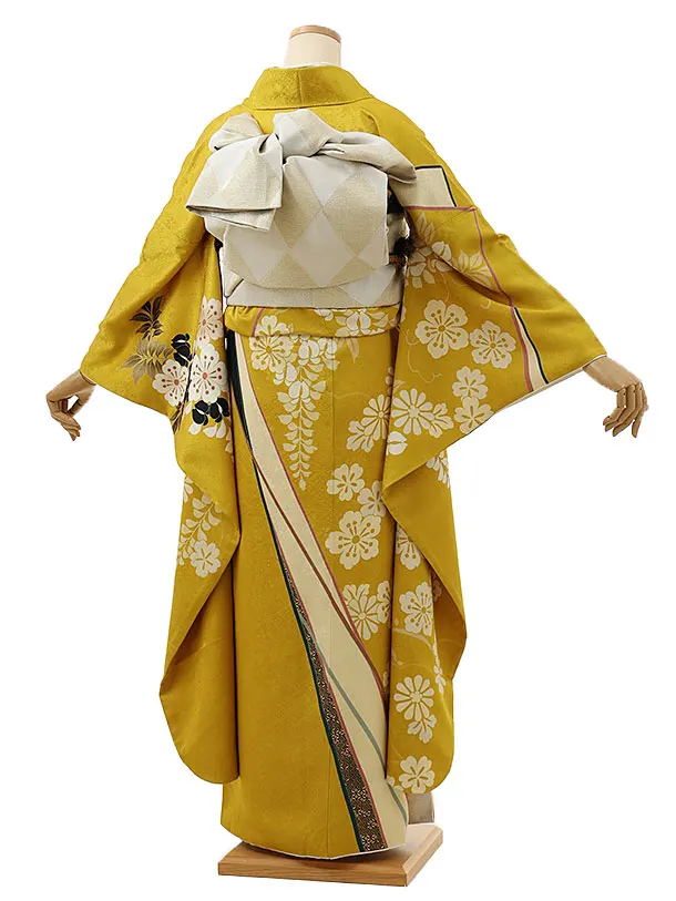 振袖レンタル1132 からし色 八重の椿