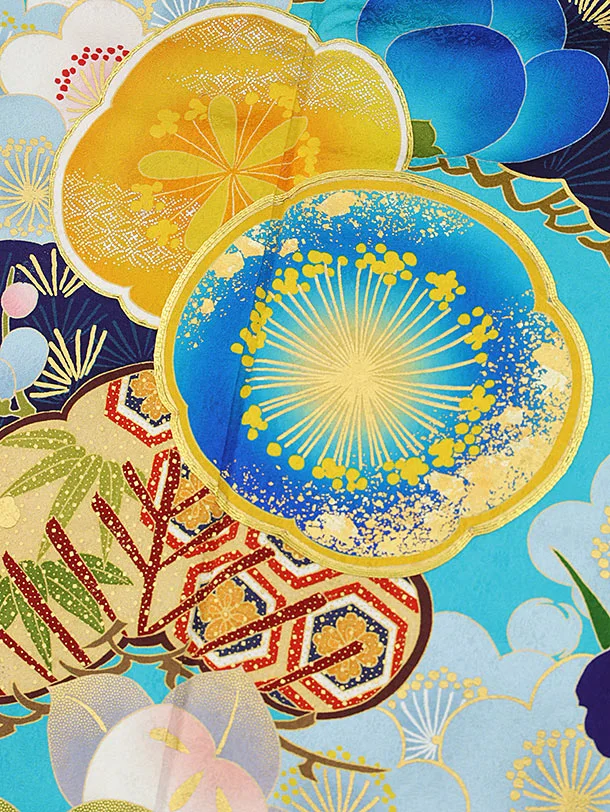 振袖レンタル1149 ターコイズ 松梅