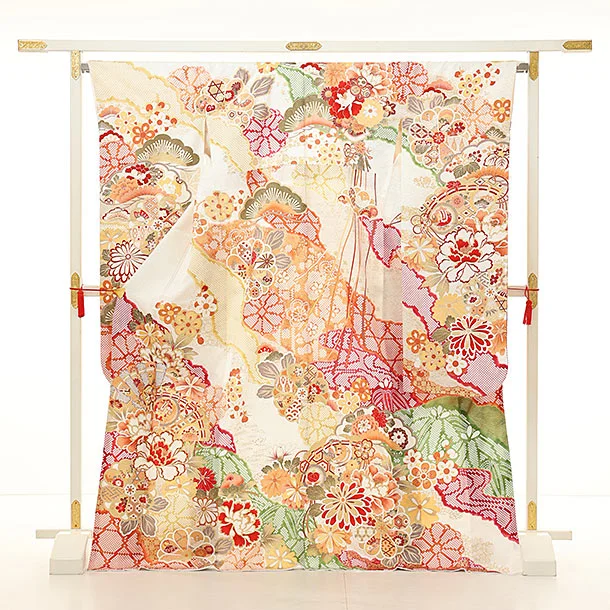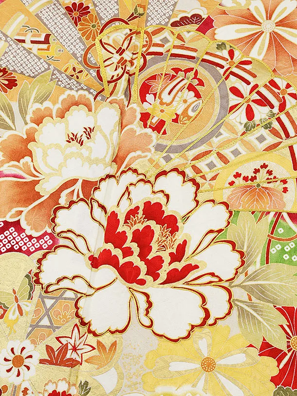 振袖レンタル1156 白地 扇に芍薬