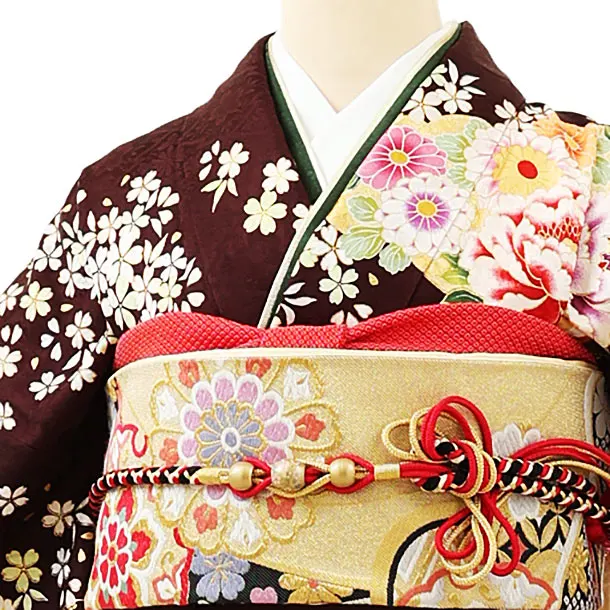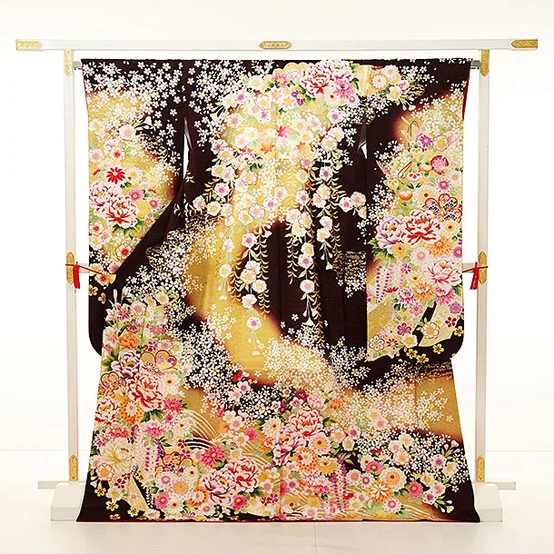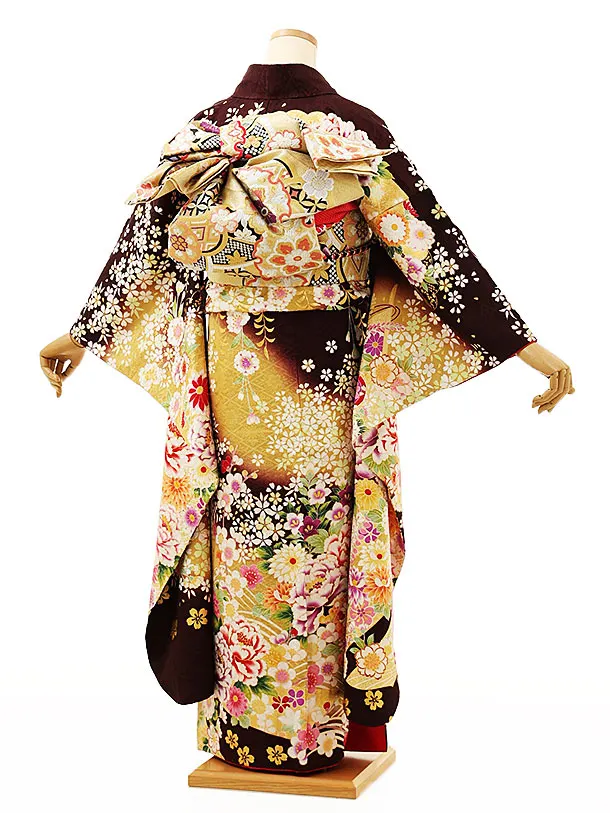 振袖レンタル1163 こげ茶 花づくし