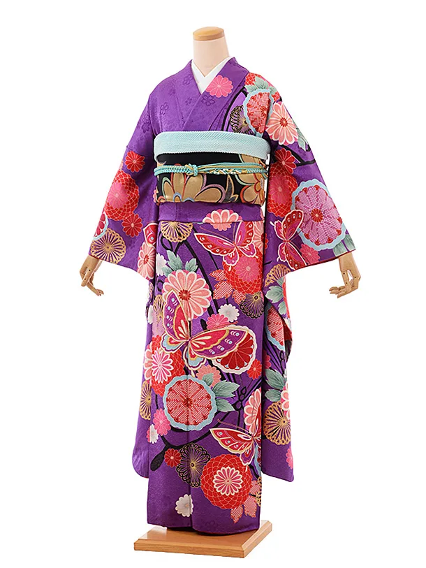 振袖レンタル1164 紫地 水面御所車に牡丹