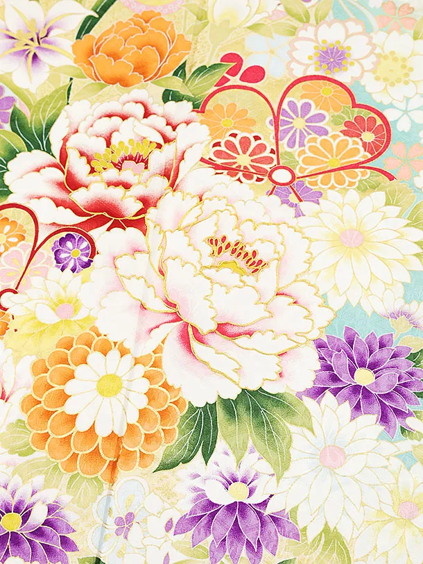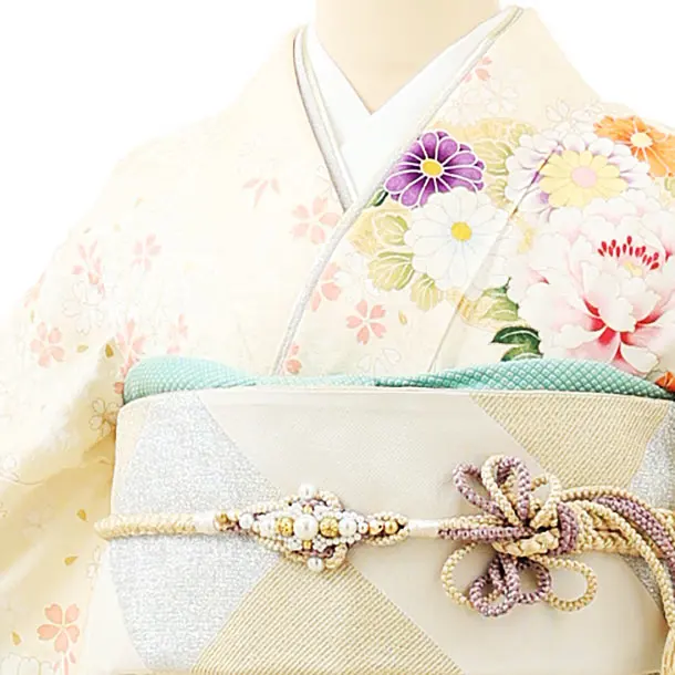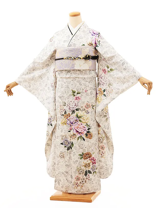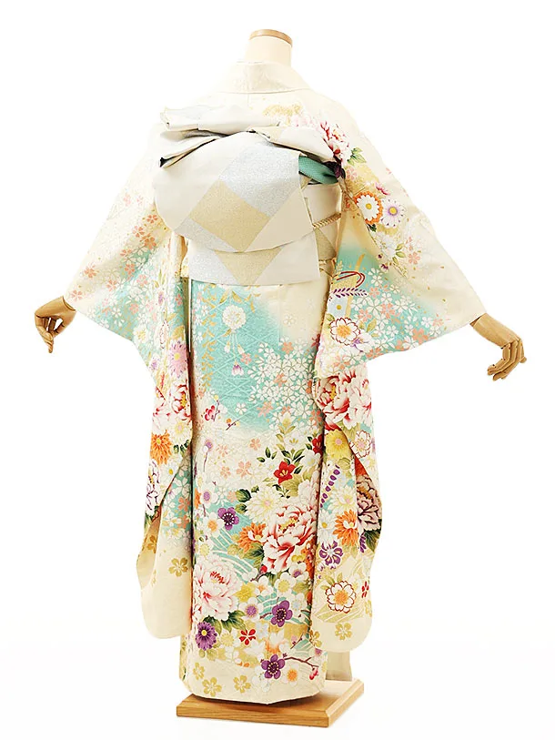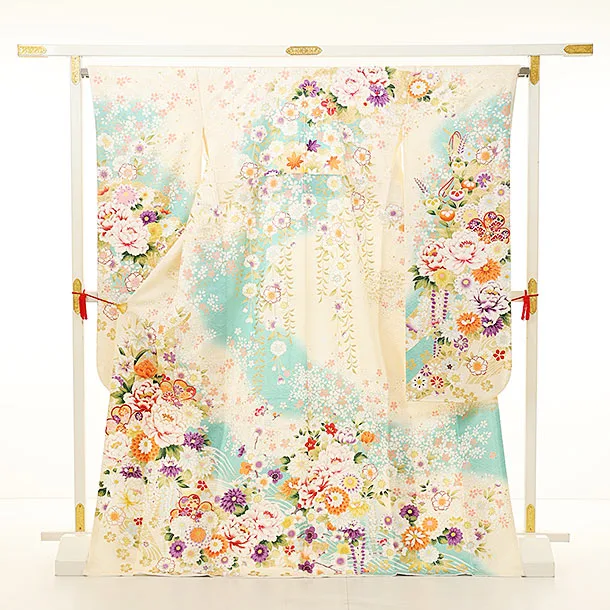 振袖レンタル1165 アイボリー 水色ぼかし花尽くし