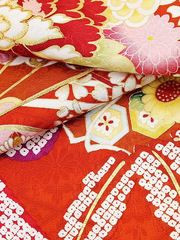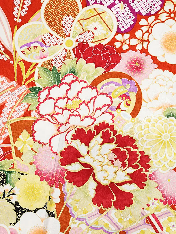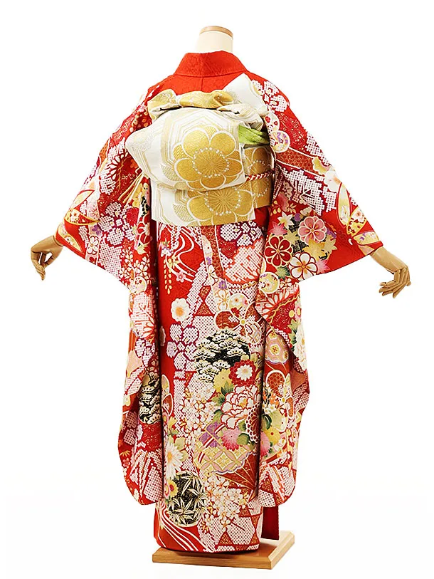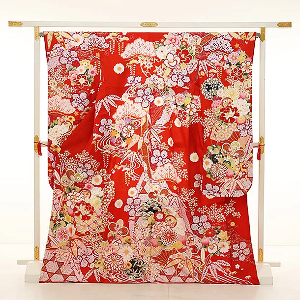 振袖レンタル1183 赤地 扇に花づくし