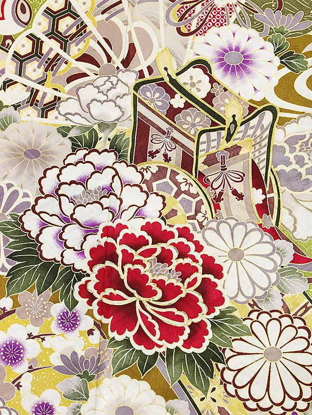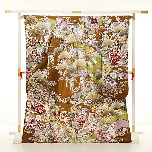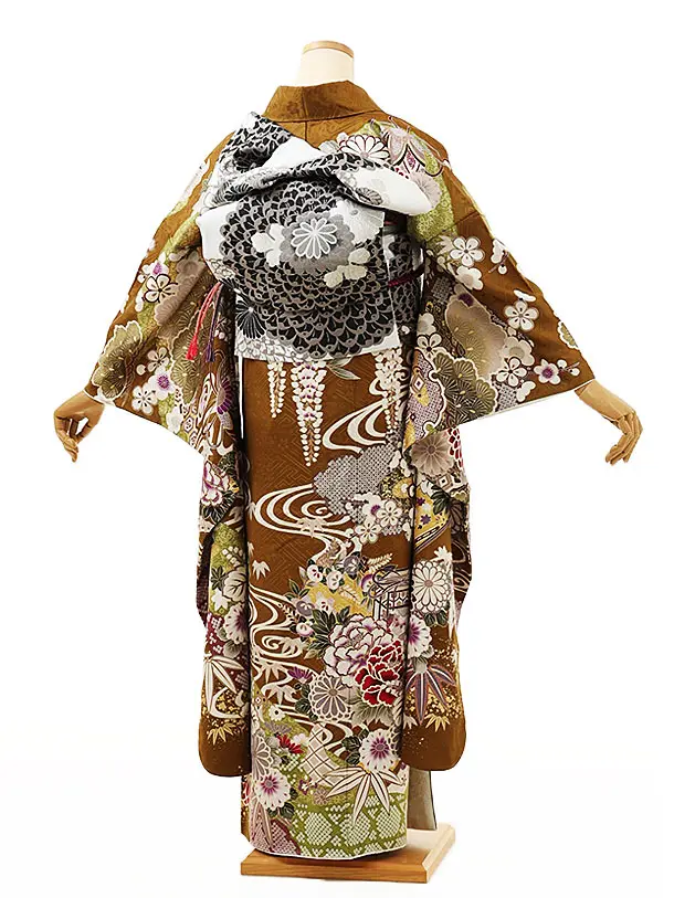 振袖レンタル1188 オリーブ地 牡丹御所車