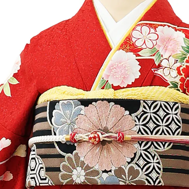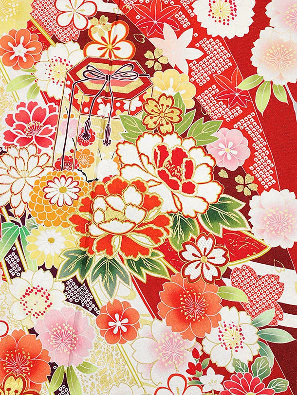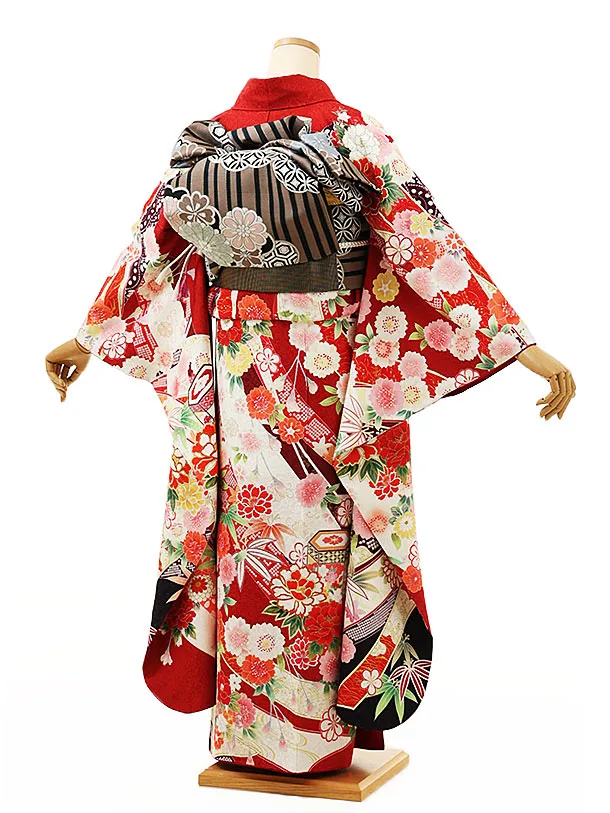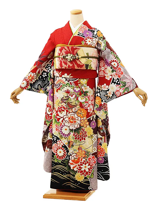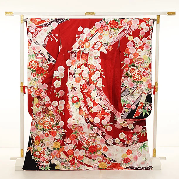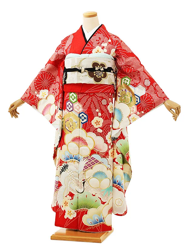 振袖レンタル1197 赤地 熨斗に貝桶牡丹