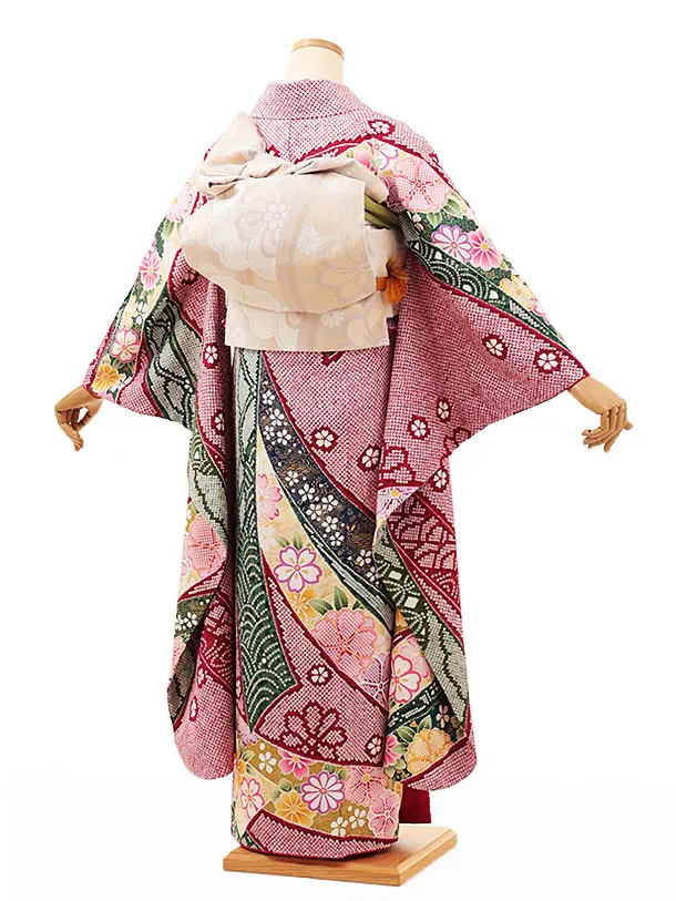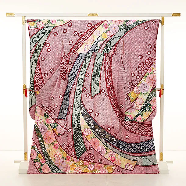 振袖レンタル1217 赤 疋田柄 熨斗に花