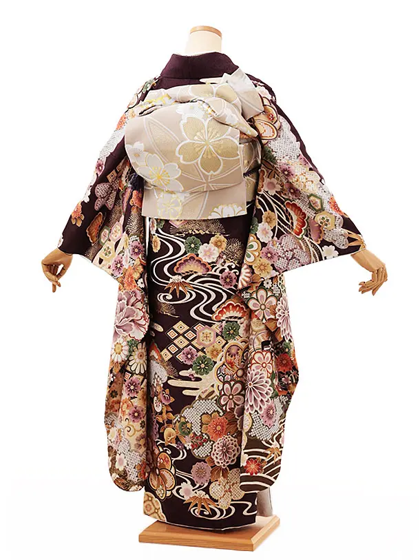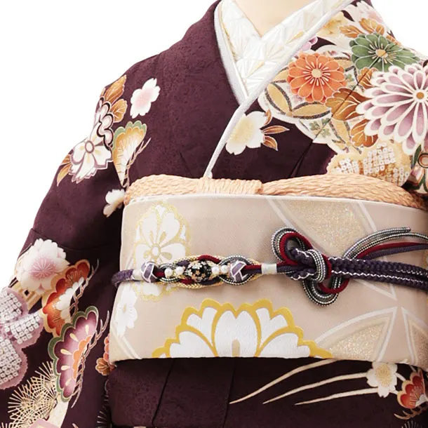 振袖レンタル1221 紫色 牡丹 ねじり梅毬