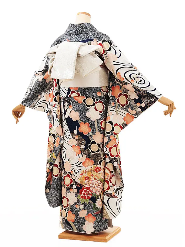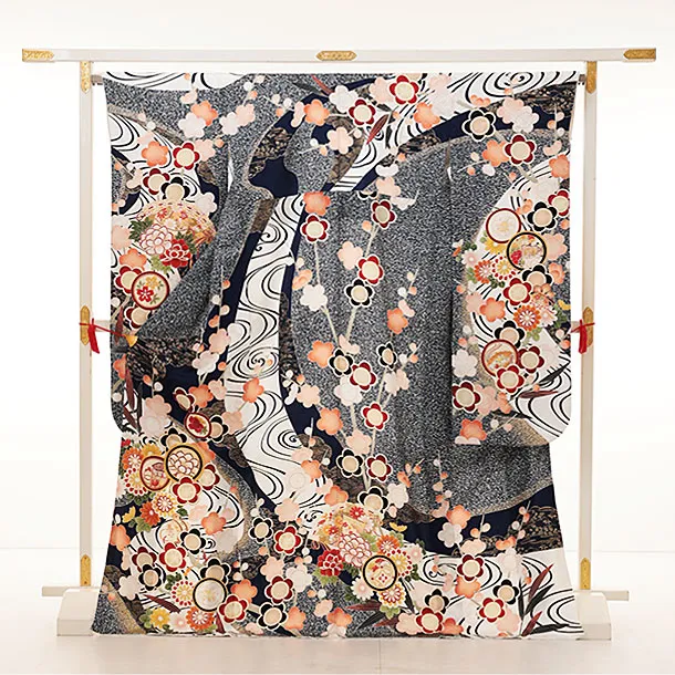 振袖レンタル1236 紺地 霜降りに梅