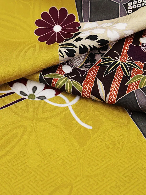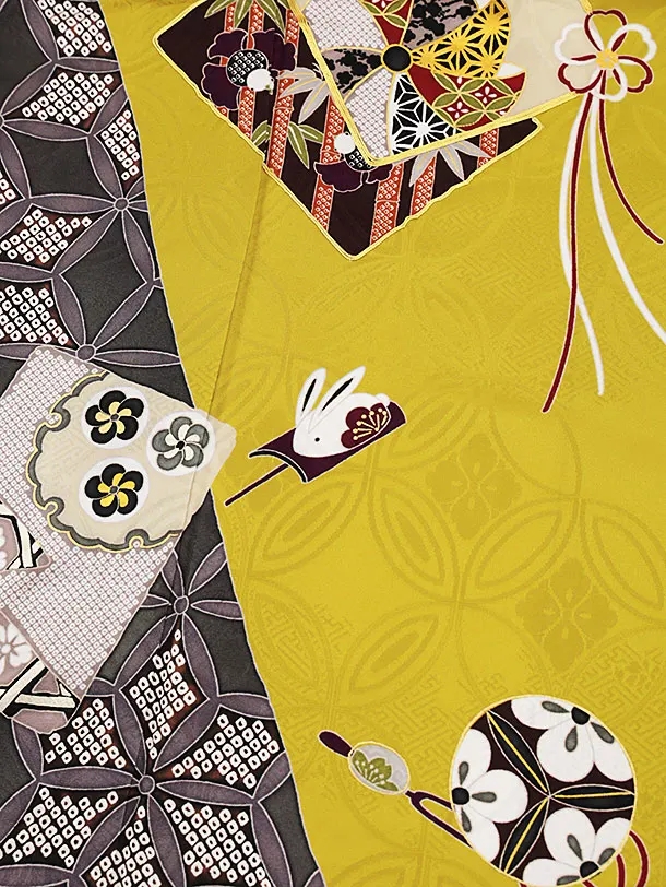 振袖レンタル1240 からし色 七宝 色紙