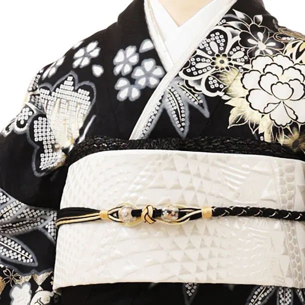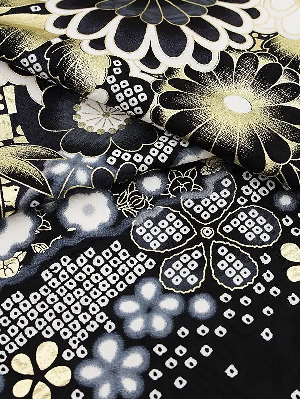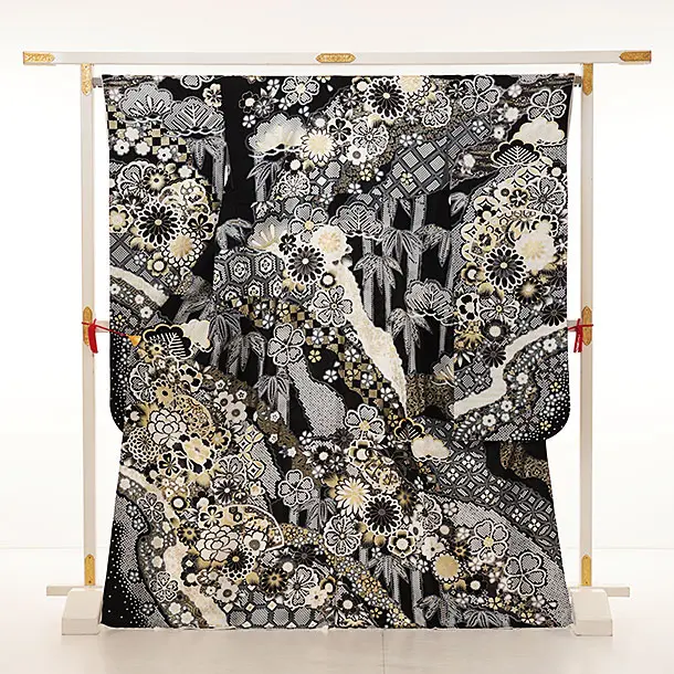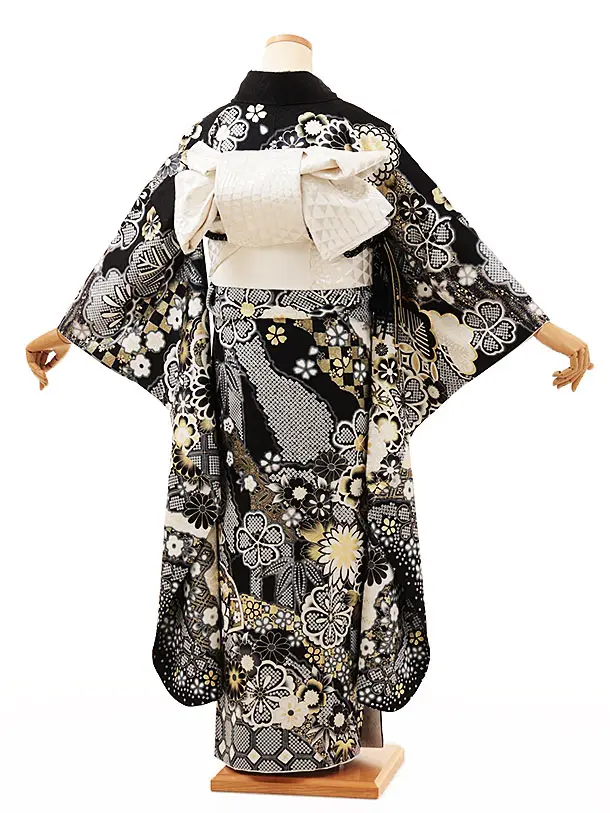 振袖レンタル1252 黒地 まり牡丹