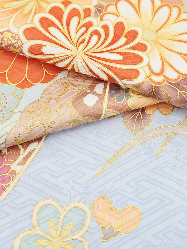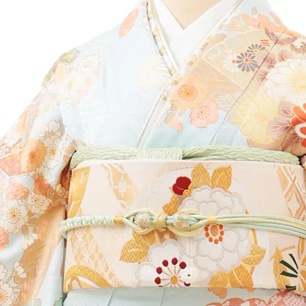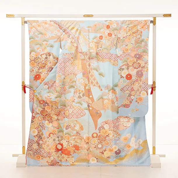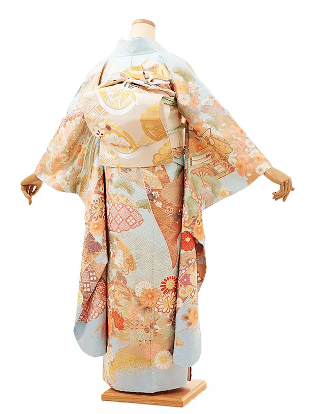 振袖レンタル1255 桂由美 水色 貝桶のし扇菊