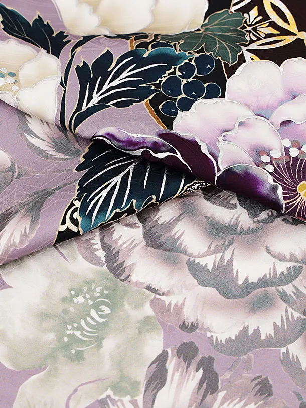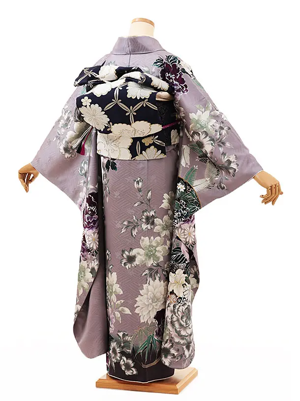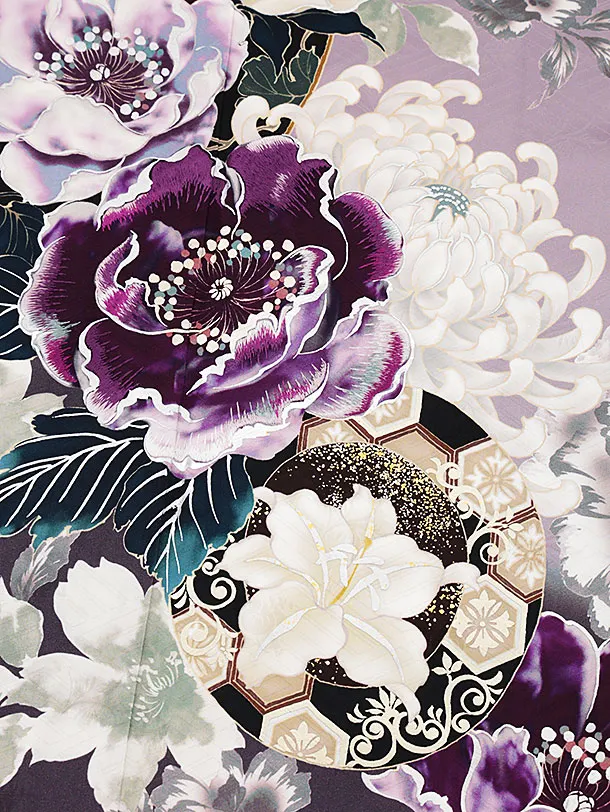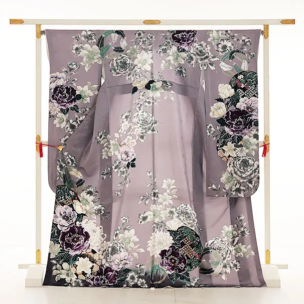 振袖レンタル1266 パープルグレー地 牡丹百合若松