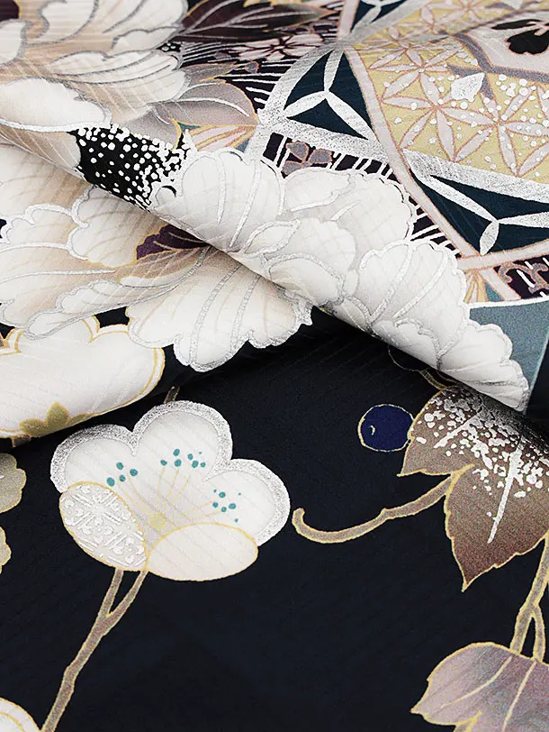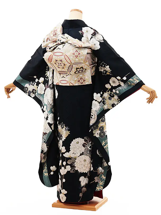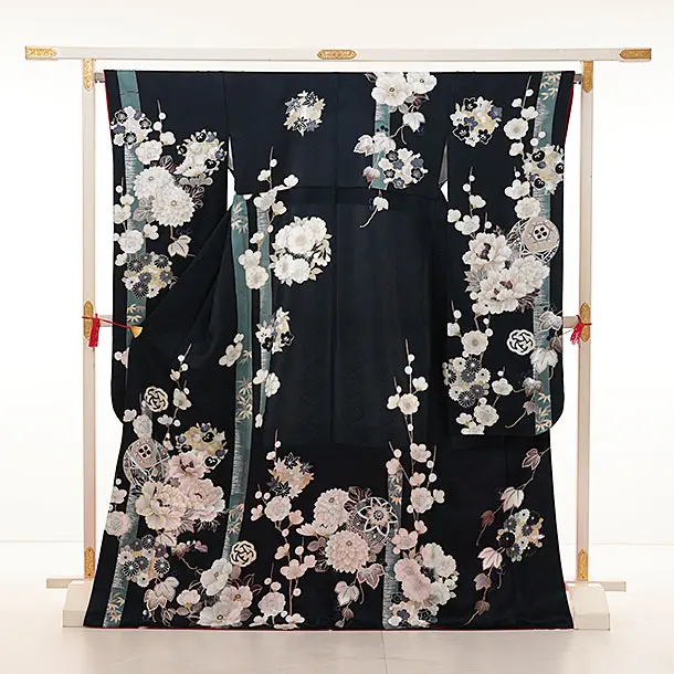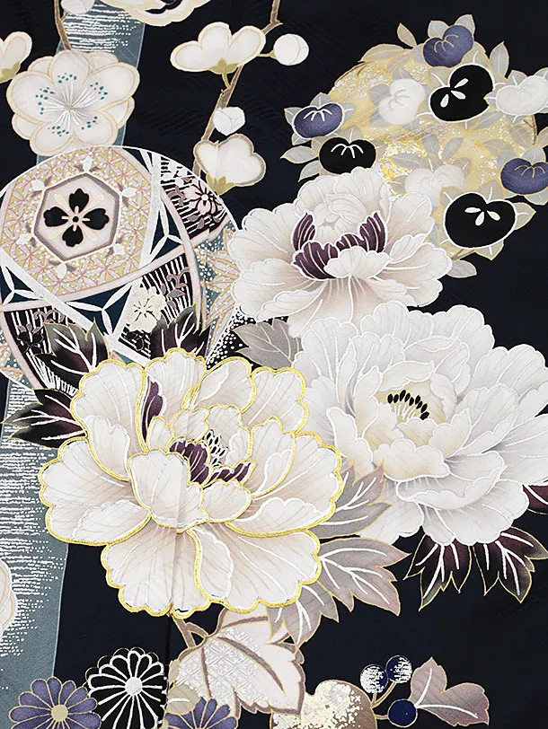 振袖レンタル1276 濃紺地 竹にまり牡丹