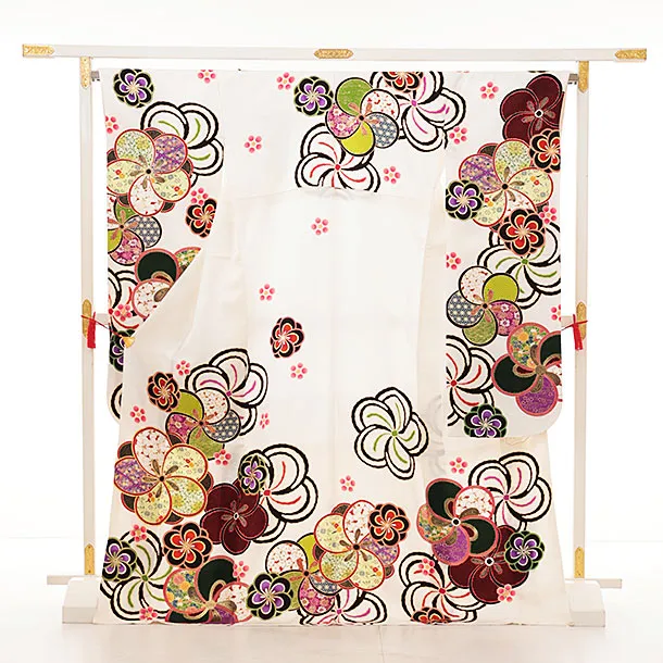 振袖レンタル1289 白地 ねじり梅