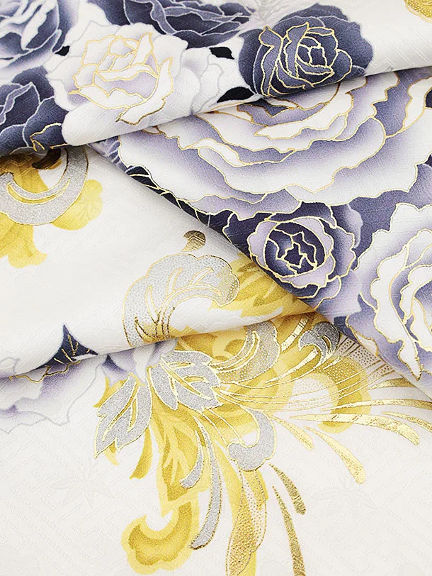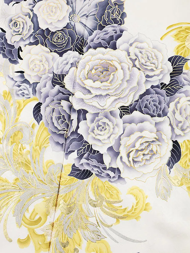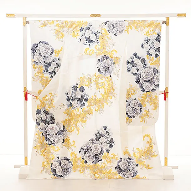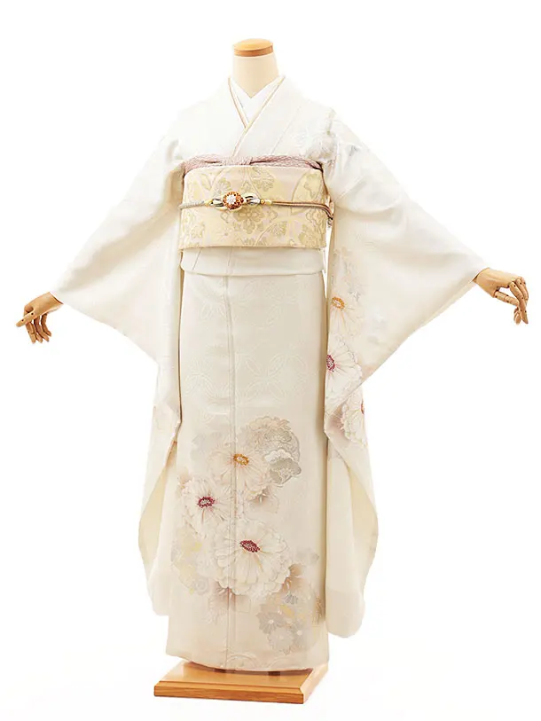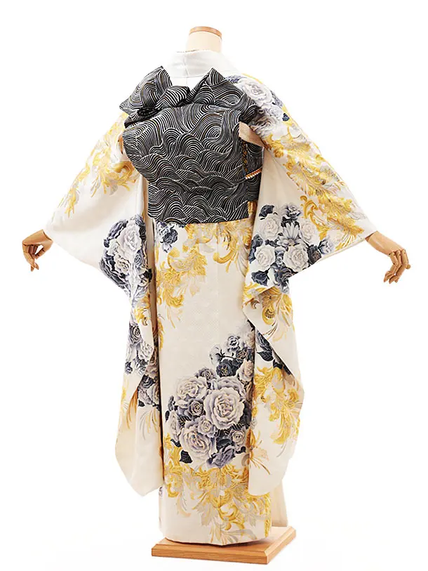 振袖レンタル1314 オフホワイト地 ゴールドブーケ