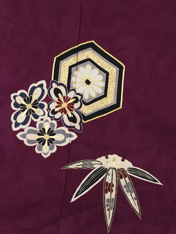 振袖レンタル1321 バーガンディ 亀甲文様