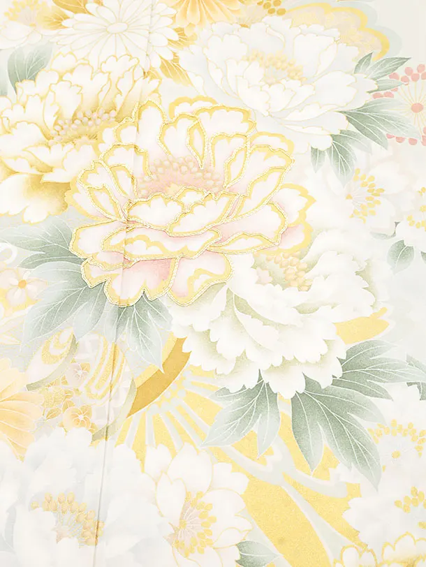 振袖レンタル1332 ヒワ色 八重桜に牡丹