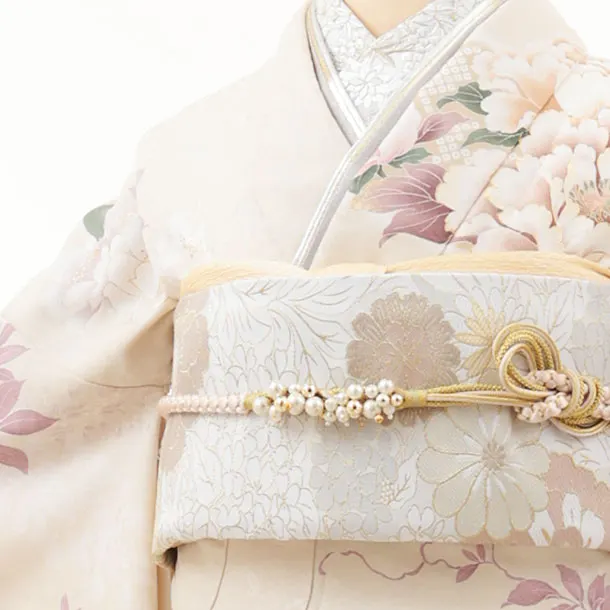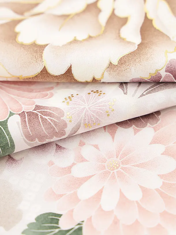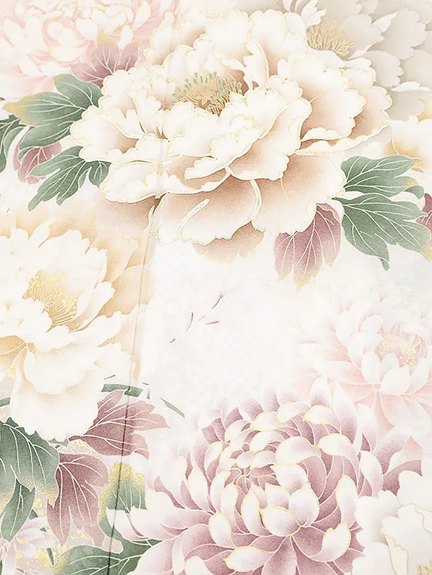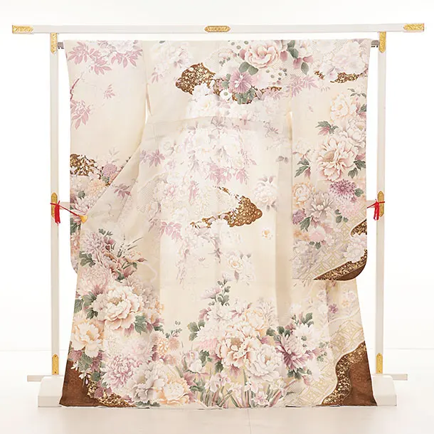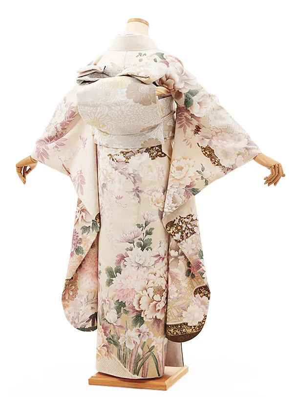 振袖レンタル1334 薄ベージュ 乱菊に牡丹