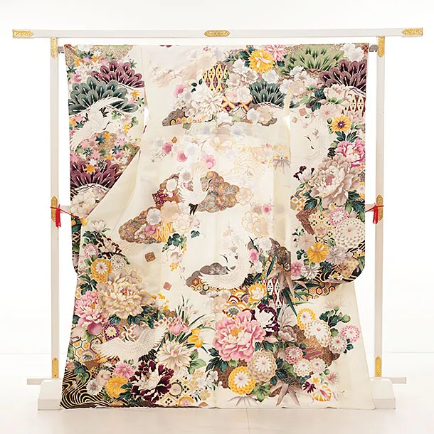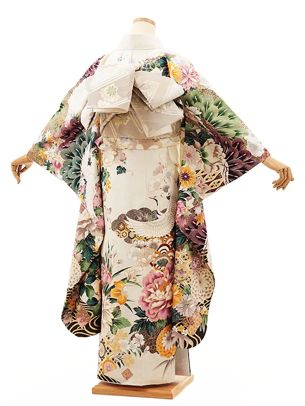 振袖レンタル1336 クリーム地 牡丹に鶴