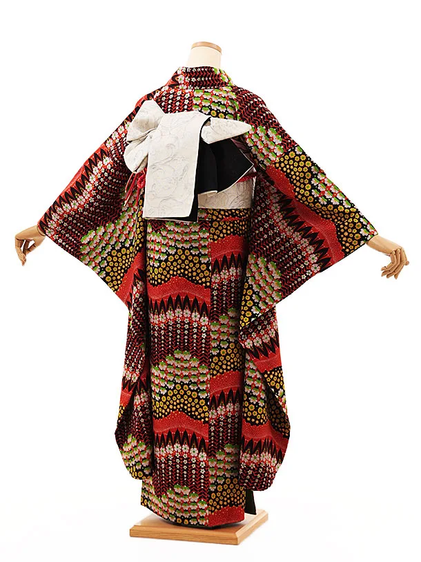 振袖レンタル1349 モダンアンテナ レッドブラックフラワーガーデン