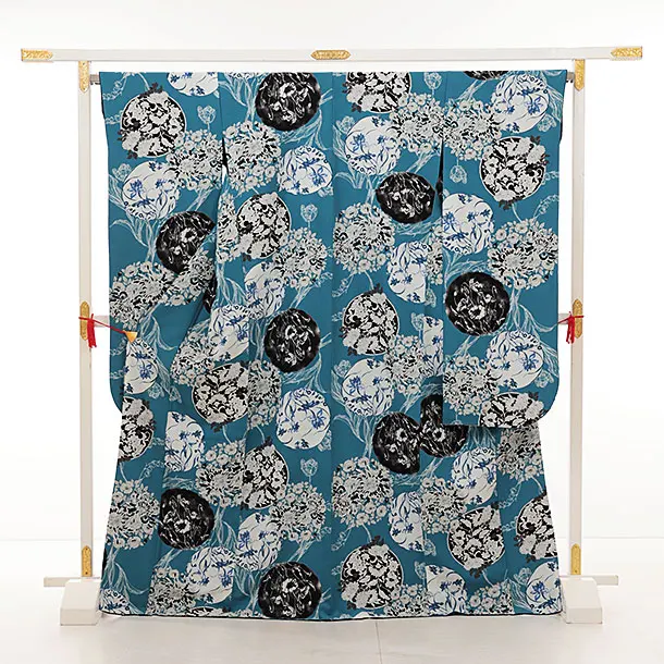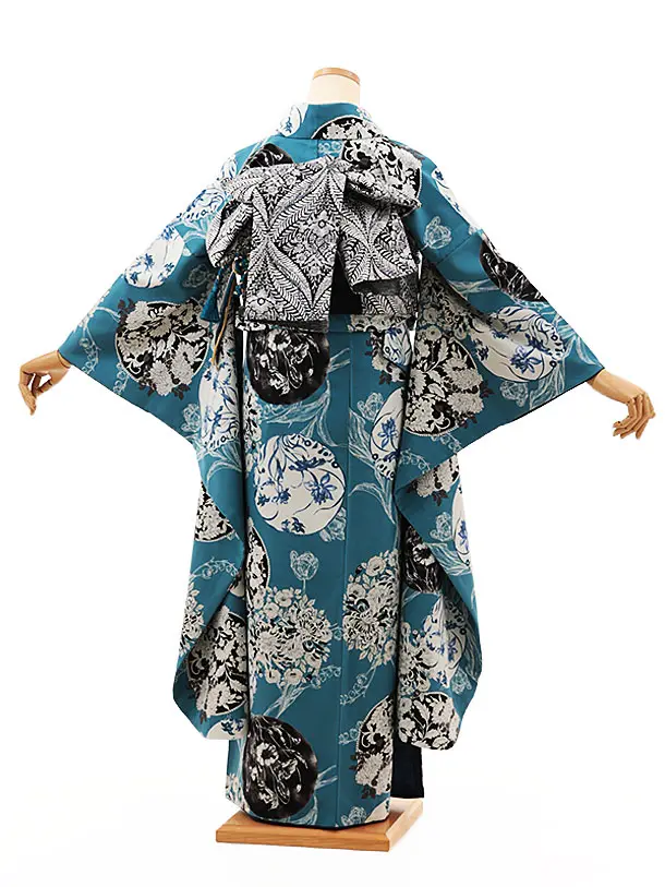 振袖レンタル1359 和風館 ブルー洋花 花丸