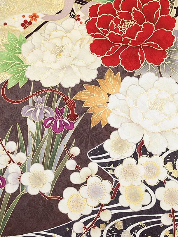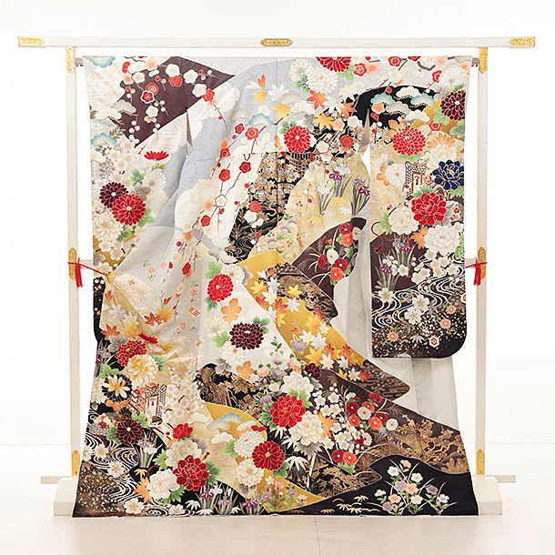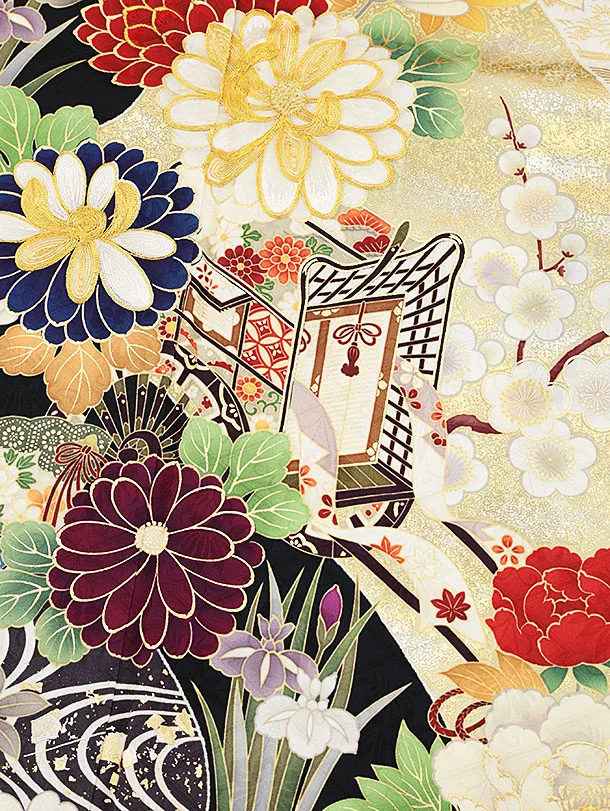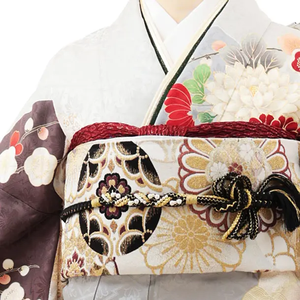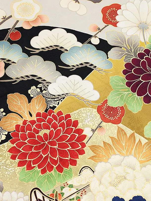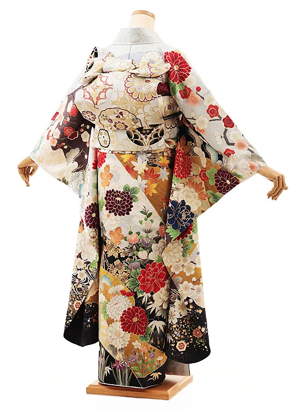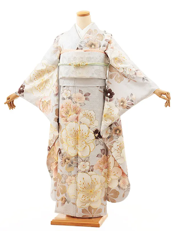 振袖レンタル1397 薄グレー地 御所車 菊花