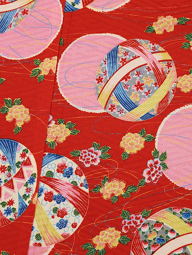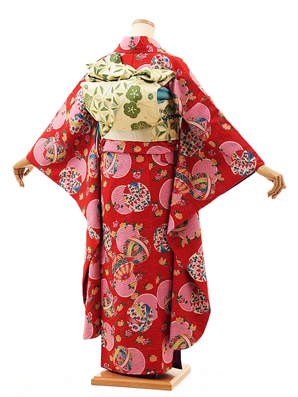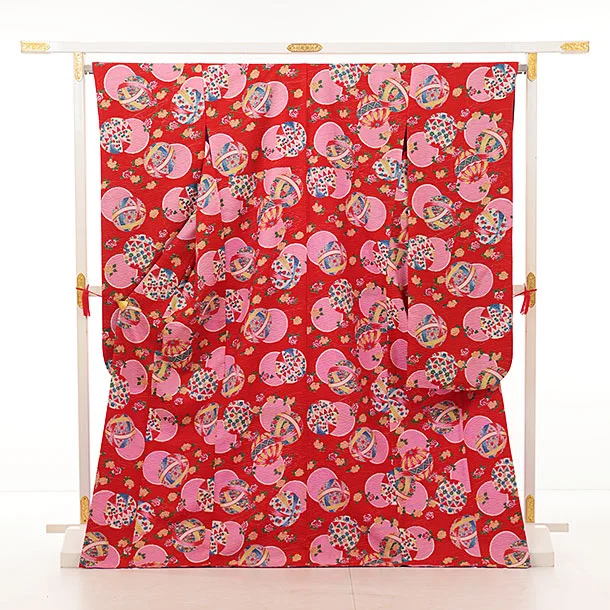 振袖レンタル1414 モダンアンテナ 赤 レトロ調 鞠
