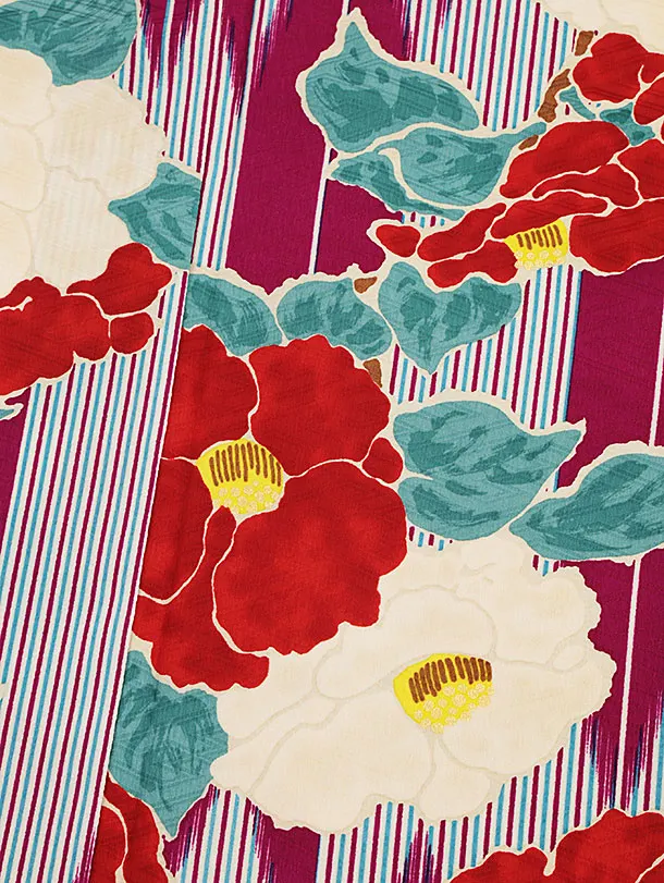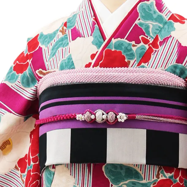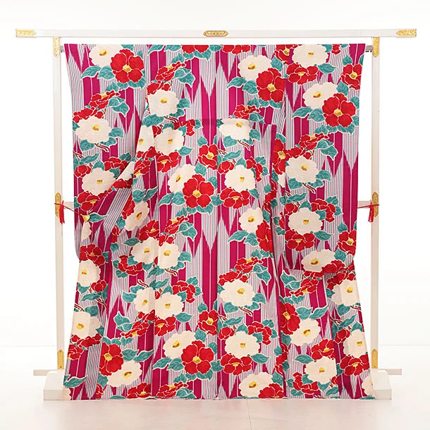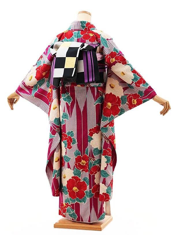 振袖レンタル1415 九重 赤紫地 矢柄椿