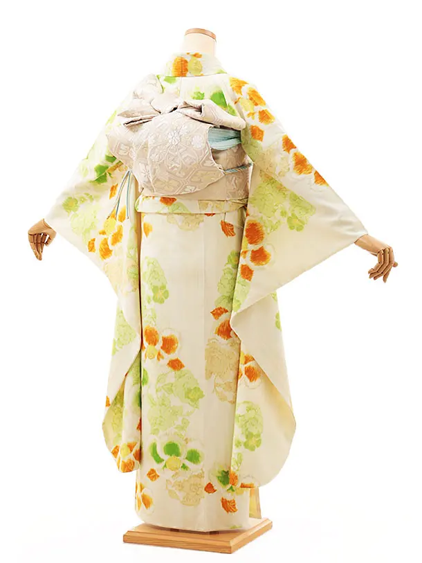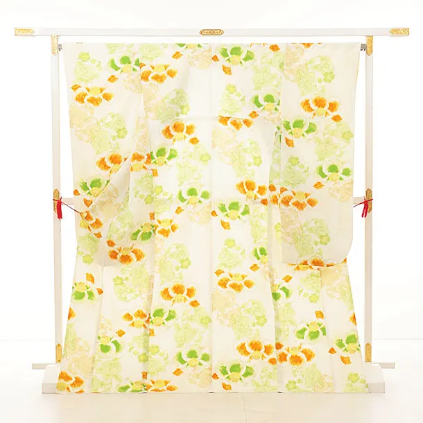 振袖レンタル1417 紅一点 クリーム地 かすれ椿