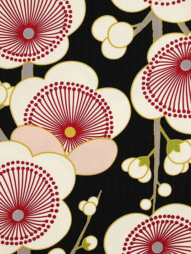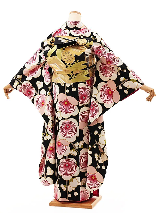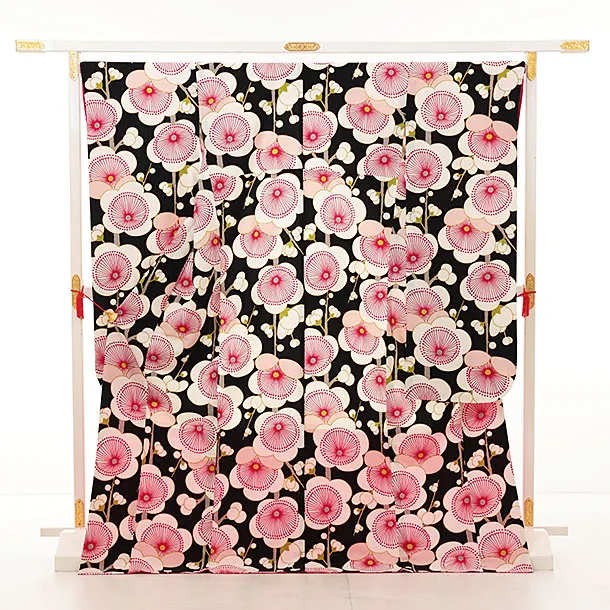 振袖レンタル1418 黒地 梅