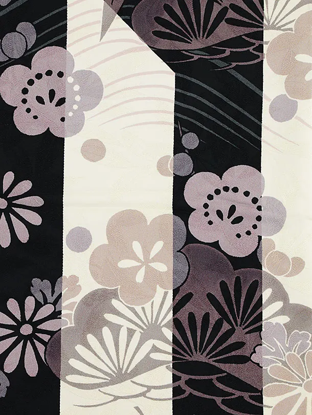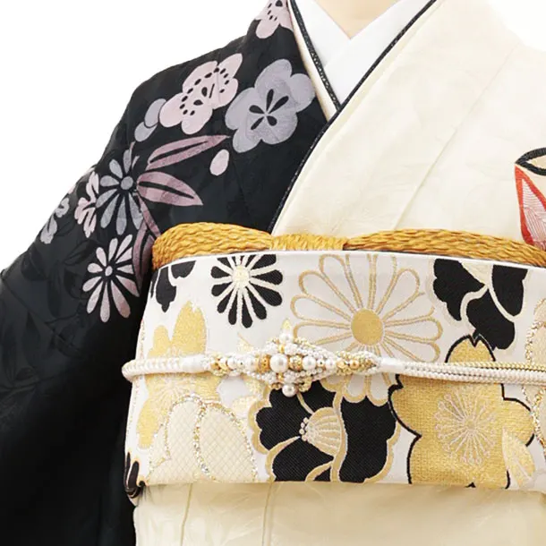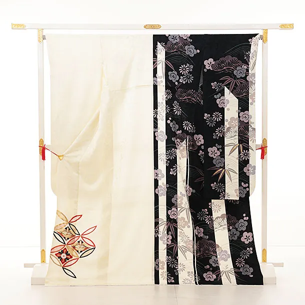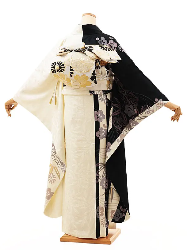 振袖レンタル1422 クリーム黒 染め分け 七宝松竹梅