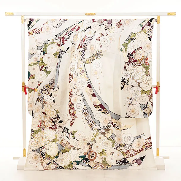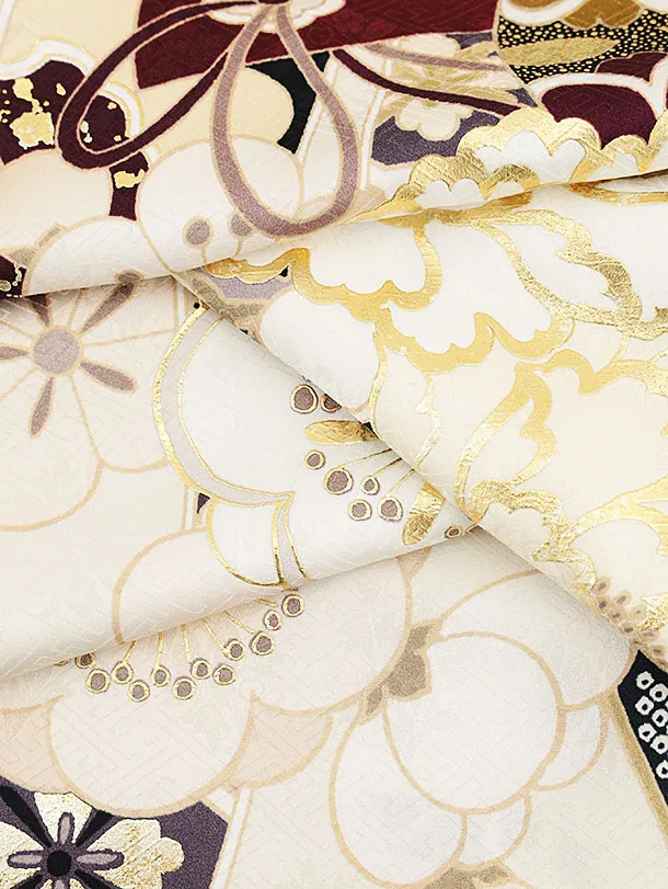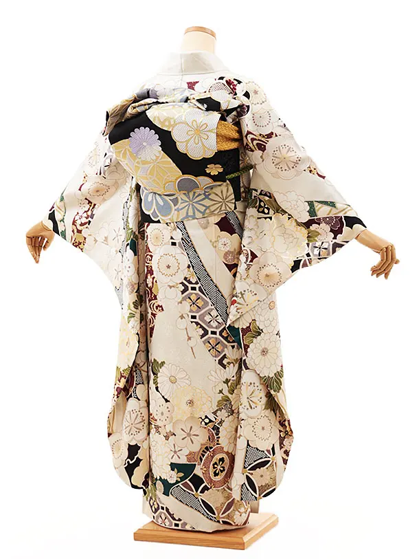 振袖レンタル1423 オフホワイト地 熨斗 百花繚乱