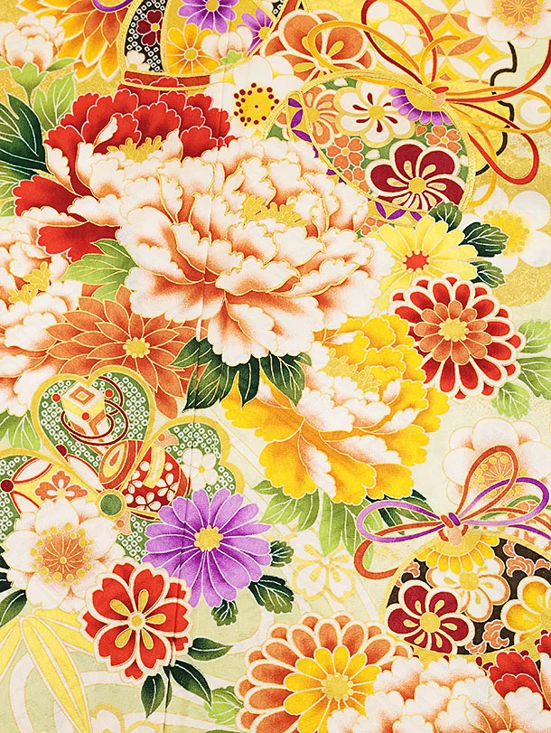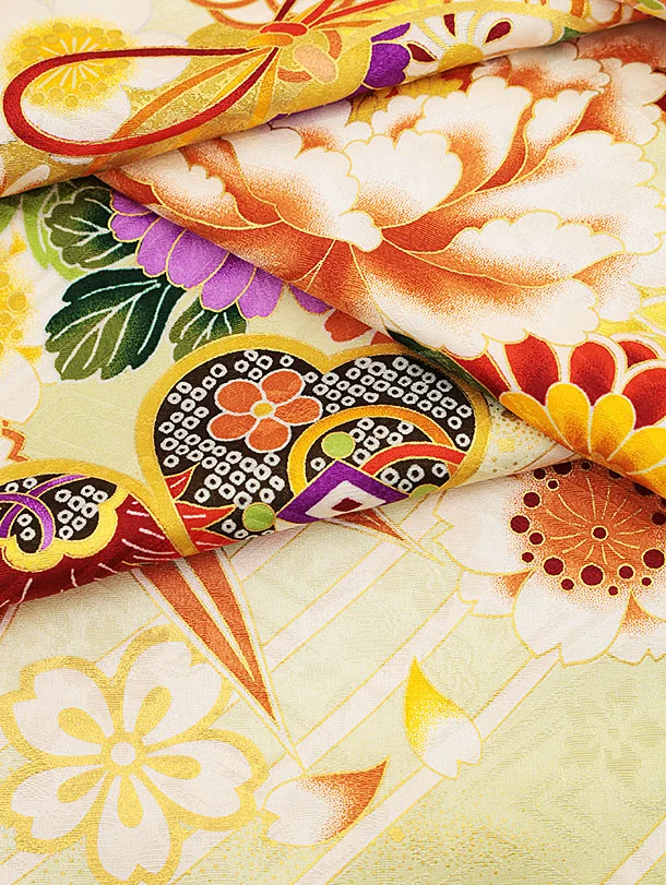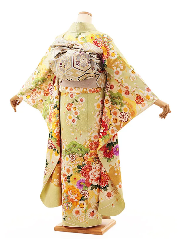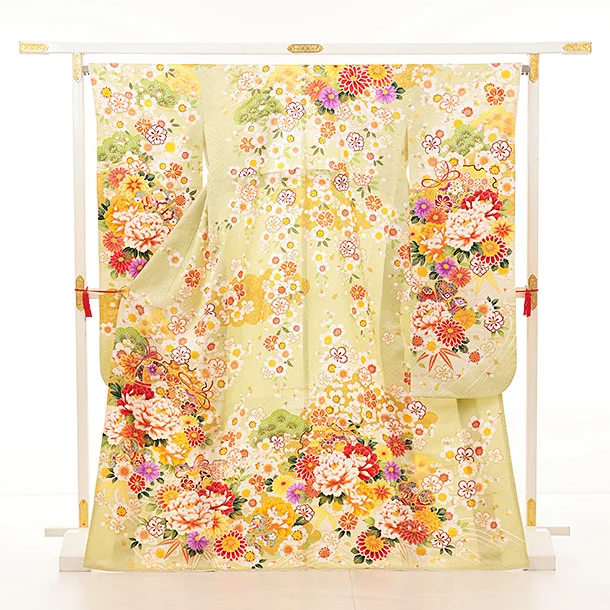 振袖レンタル1427 ヒワ色 鈴に花づくし