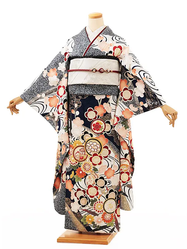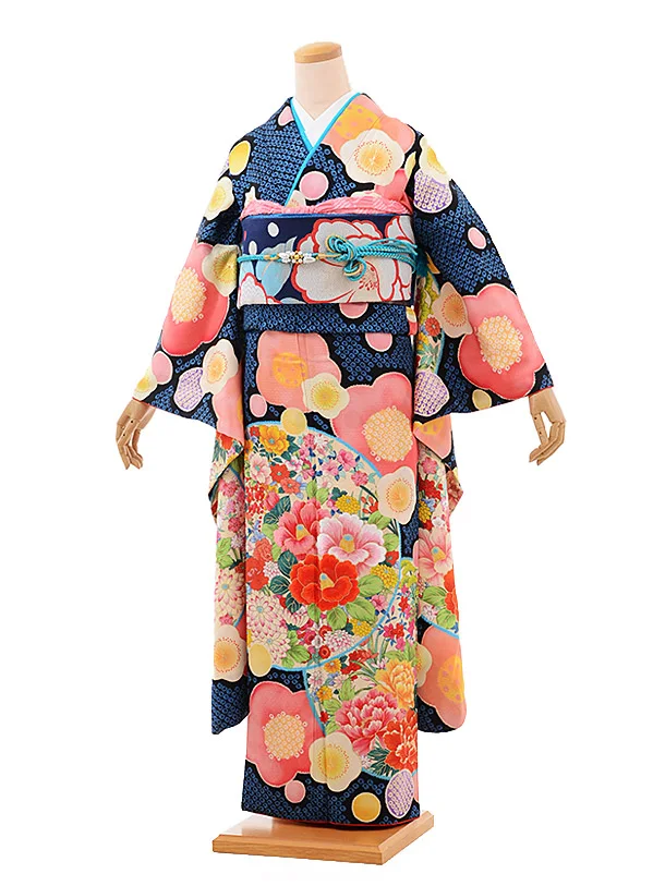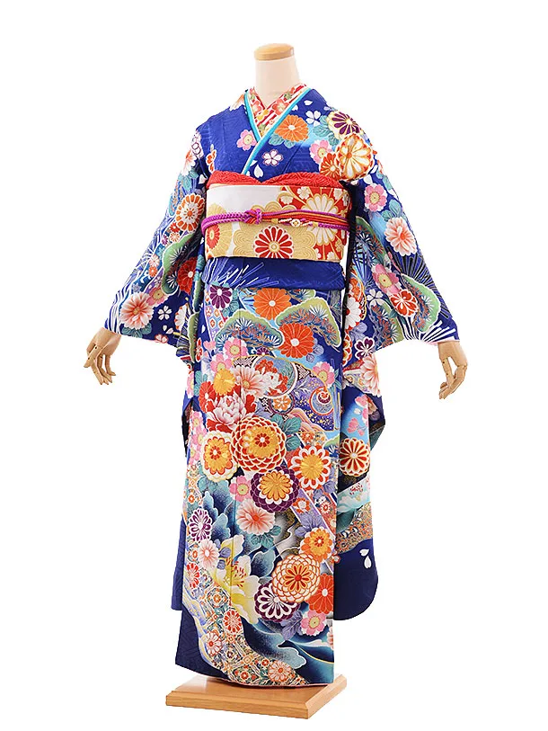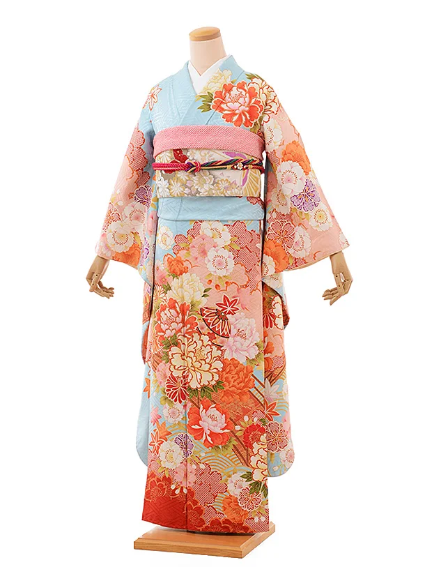 振袖レンタル1430 ブルー地 鞠牡丹 花づくし