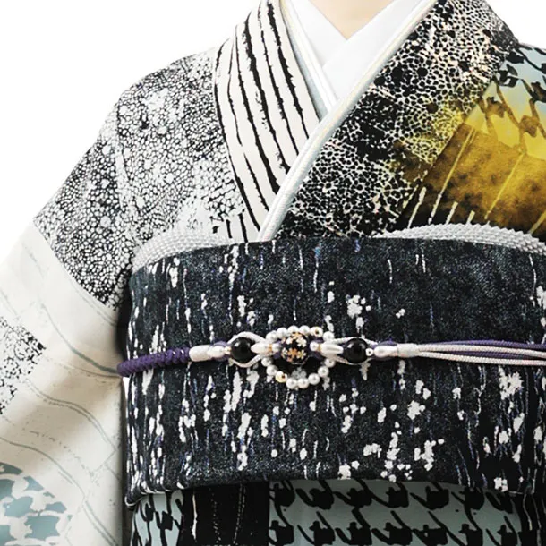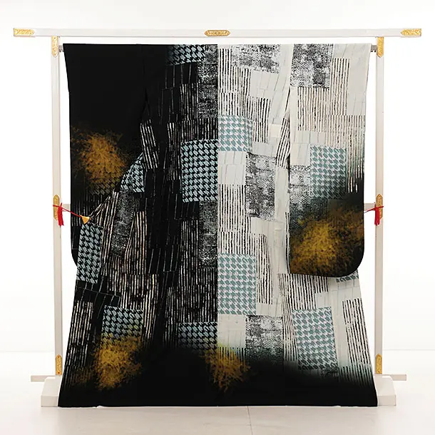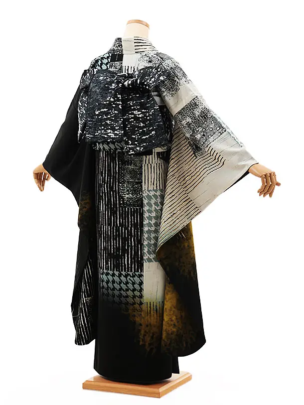 振袖レンタル1440 JEANASIS ブラックイエローパッチワーク