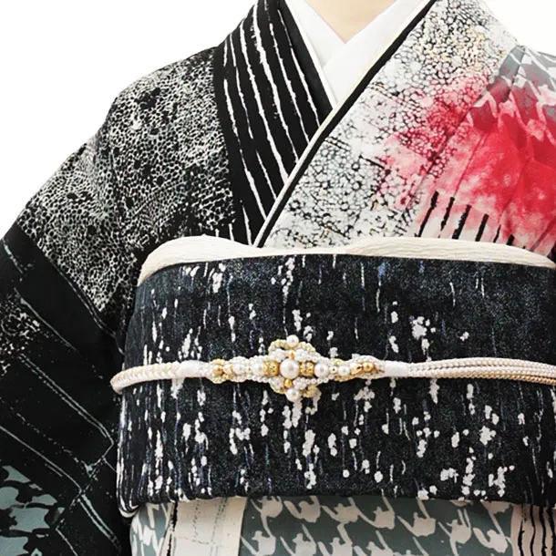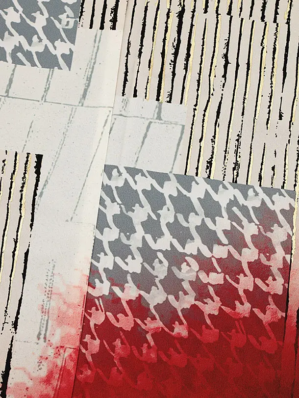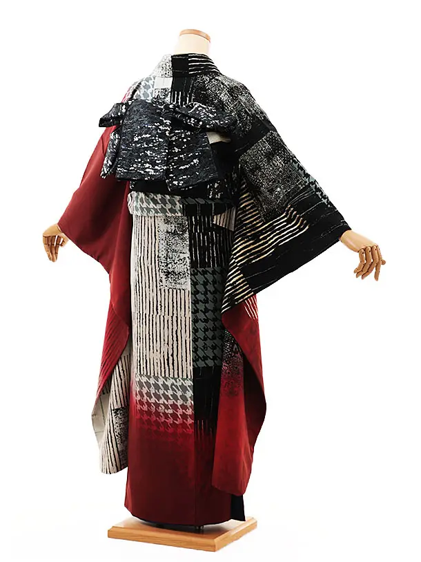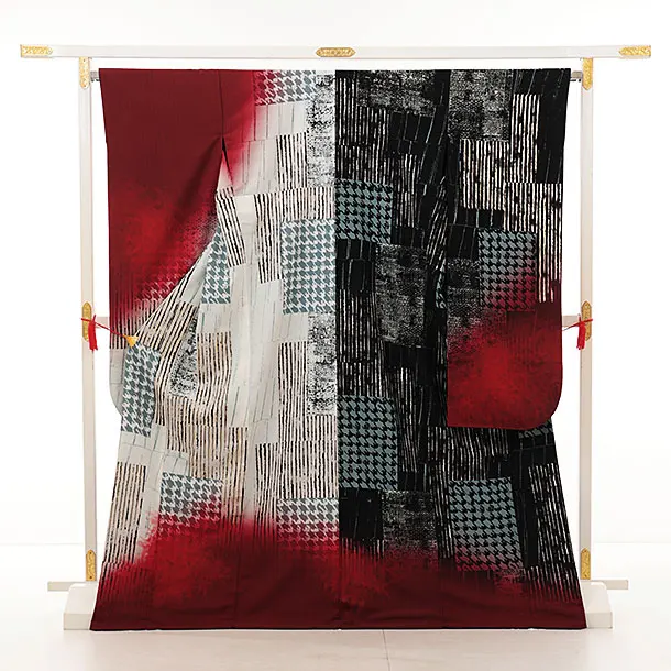 振袖レンタル1441 JEANASIS アイボリーレッドパッチワーク