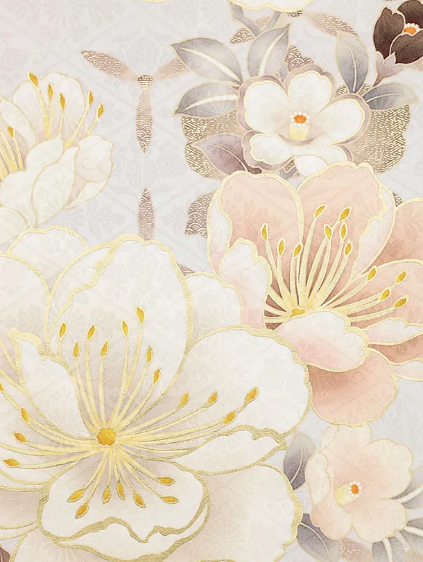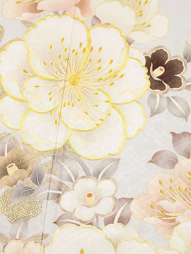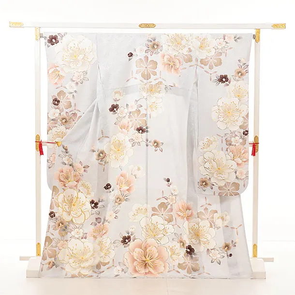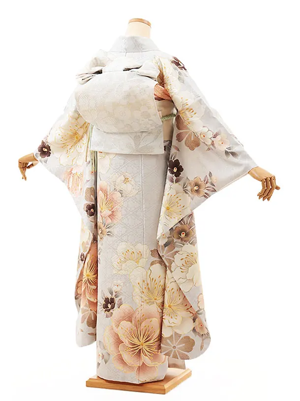 振袖レンタル1448 薄グレー地 大輪花づくし