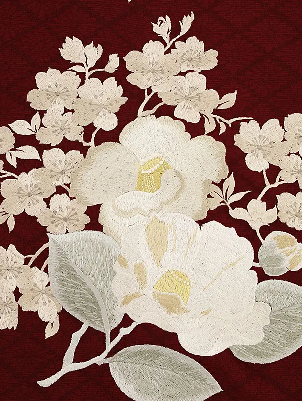 振袖レンタル1458 九重 赤地刺繍 桜椿
