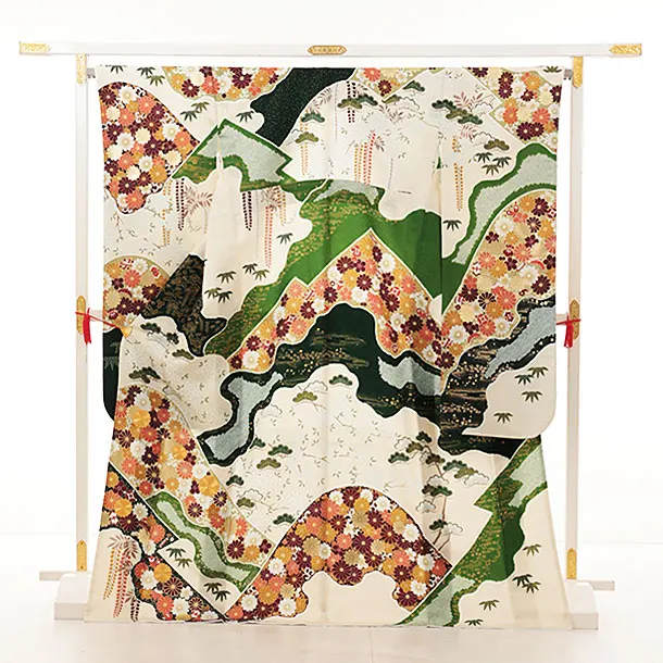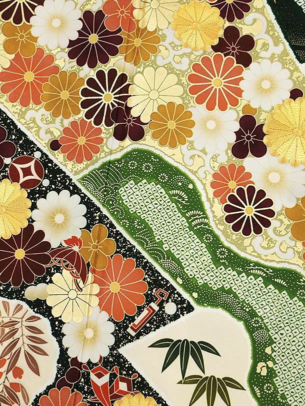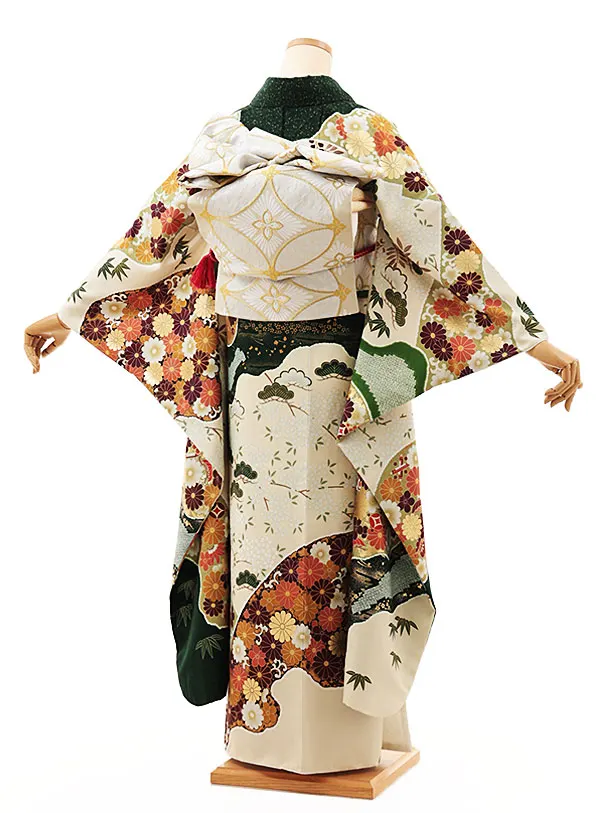 振袖レンタル1460 クリームグリーン菊づくし