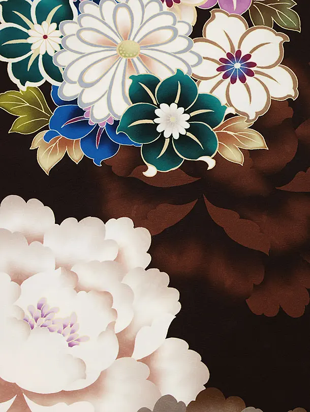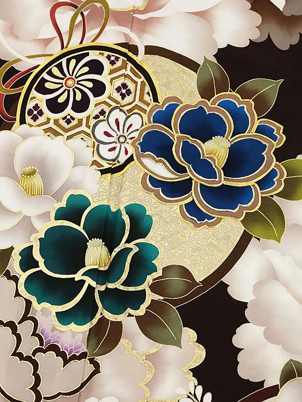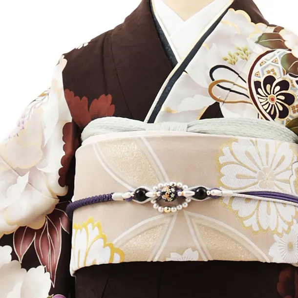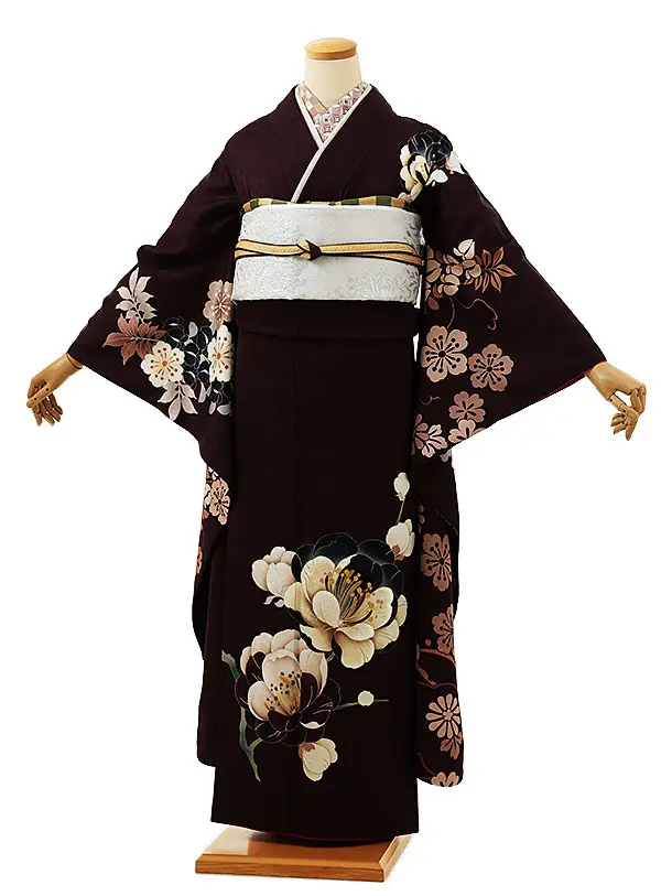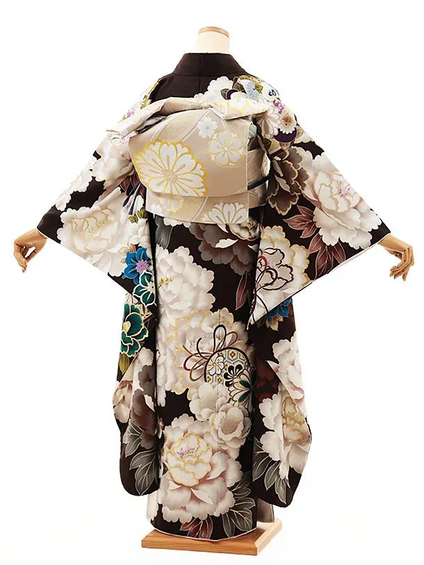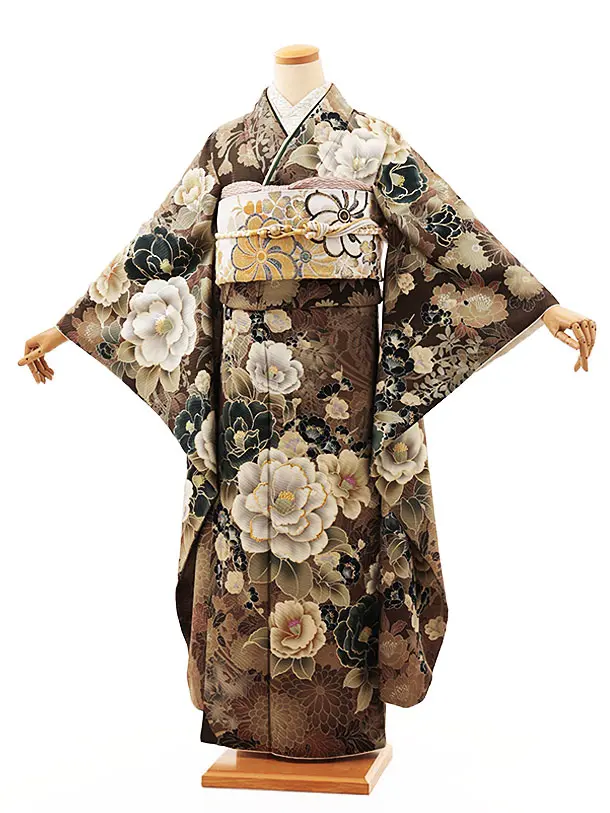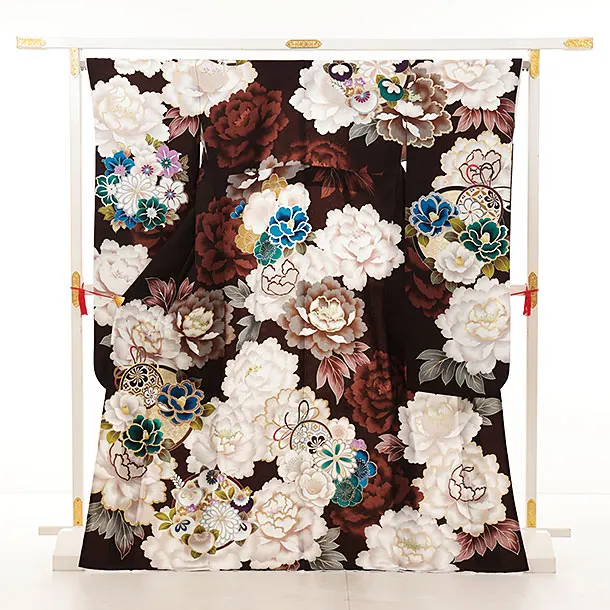 振袖レンタル1465 ダークブラウン 牡丹椿