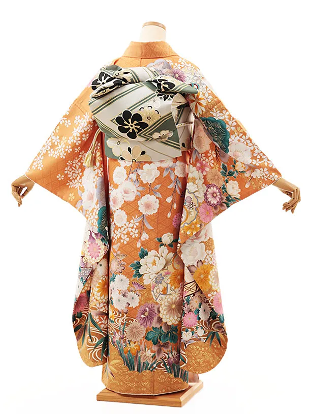 振袖レンタル1472 山吹色地 鼓に牡丹