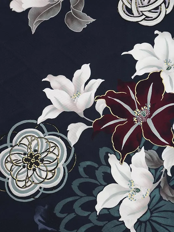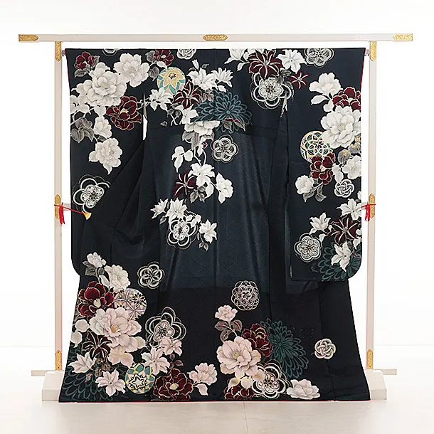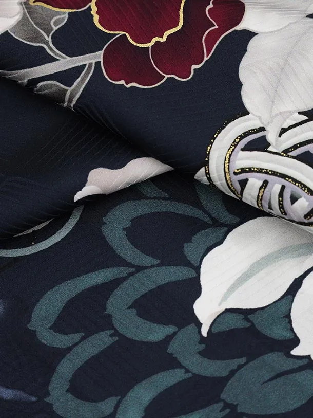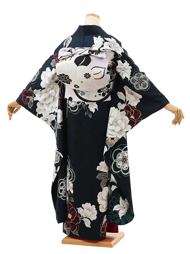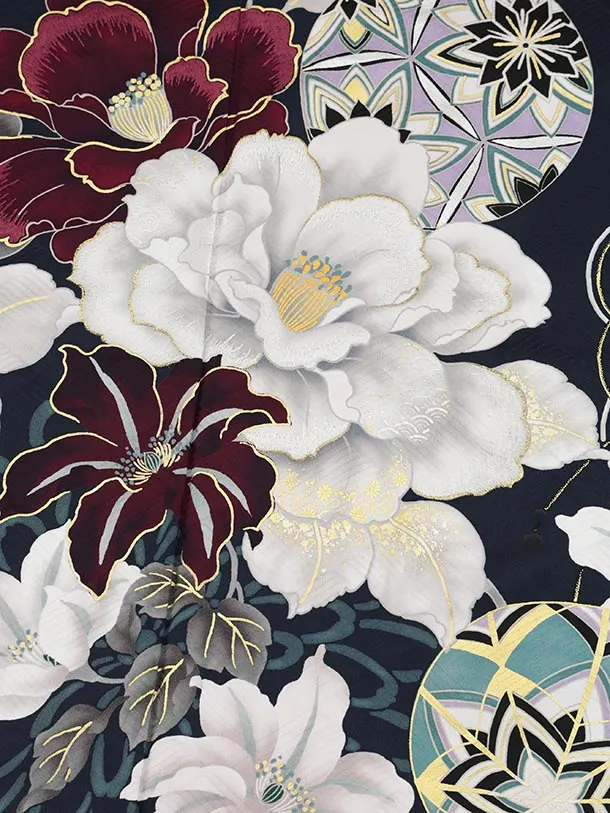 振袖レンタル1477 紺地 鞠に八重桜