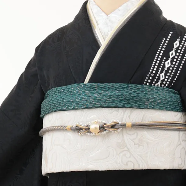 振袖レンタル1492 黒地 ラインストーン