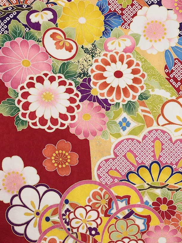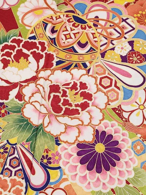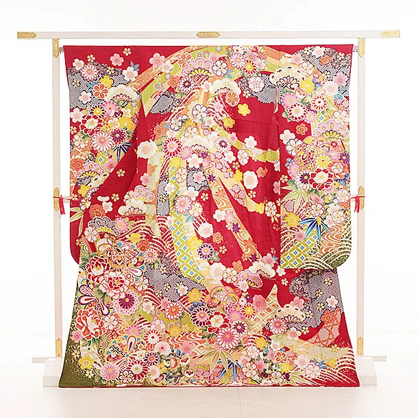 振袖レンタル1524 赤地 鞠に牡丹
