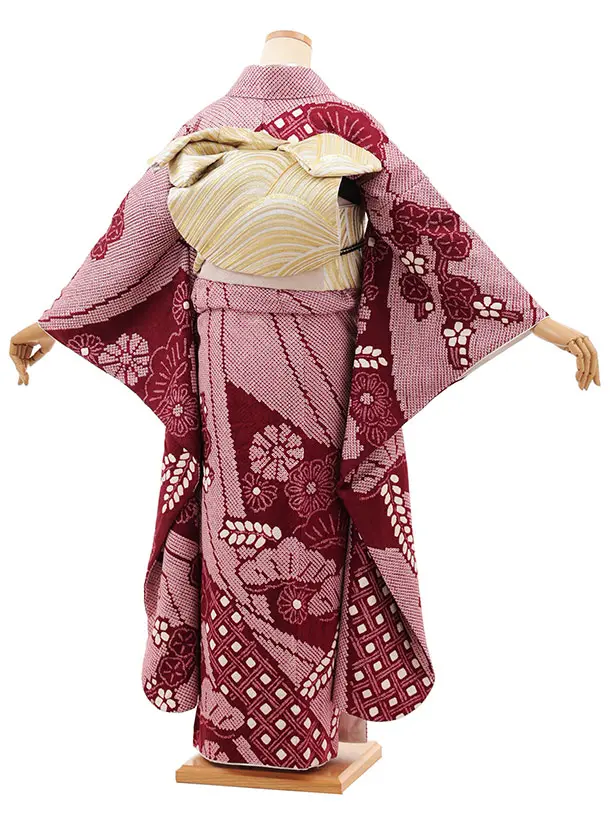 振袖レンタル1540 ボルドー 絞り 牡丹 藤