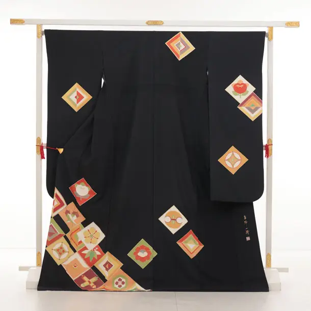 振袖レンタル1547 黒地ラメ×吉祥文様