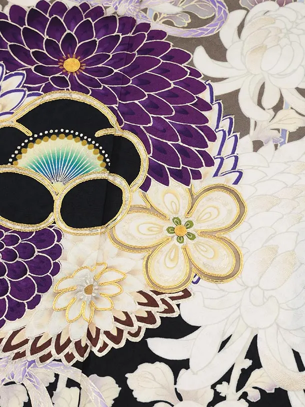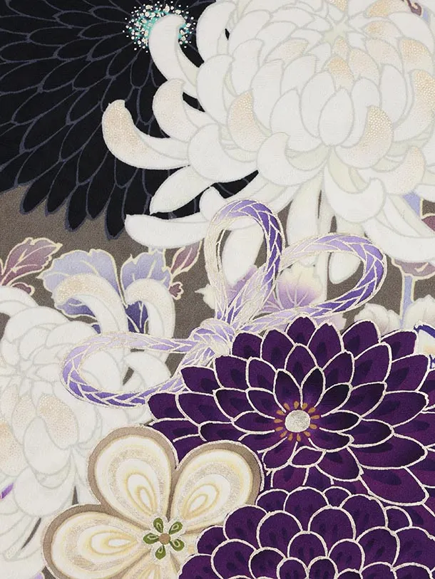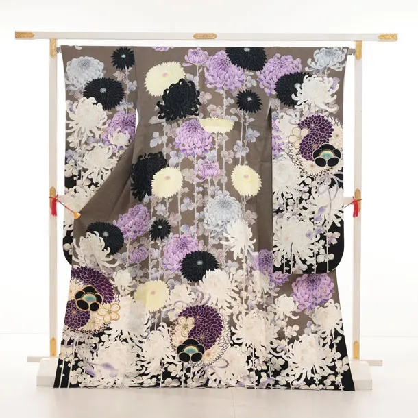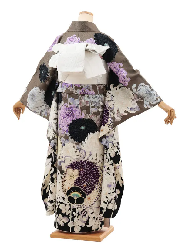 振袖レンタル1555 九重 カーキブラウン 梅に菊