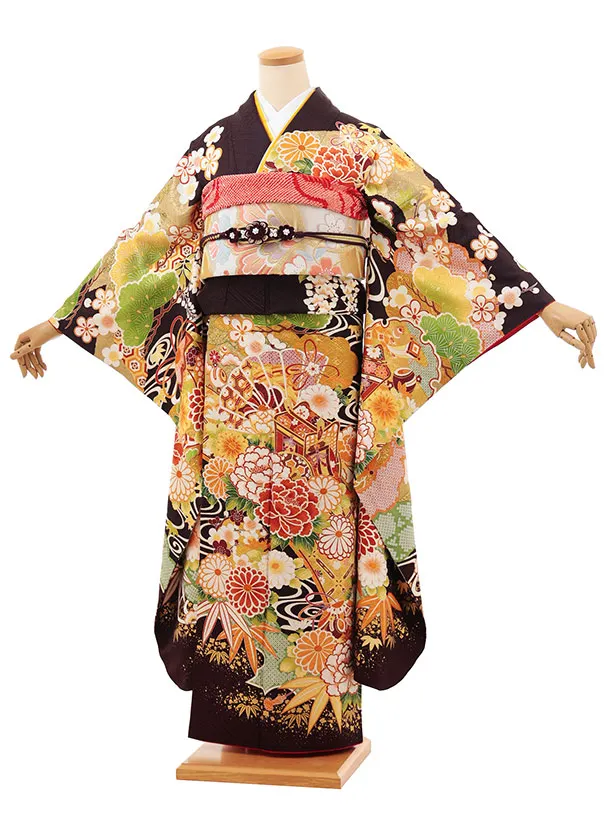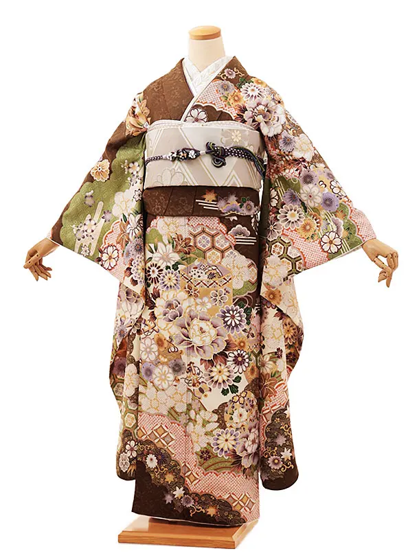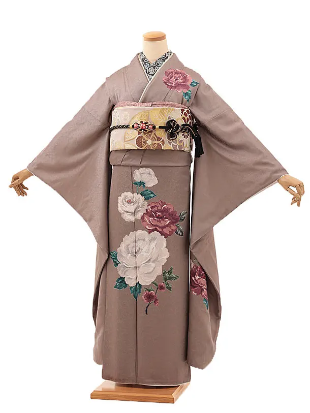 振袖レンタル1558 ブラウン 鞠に牡丹