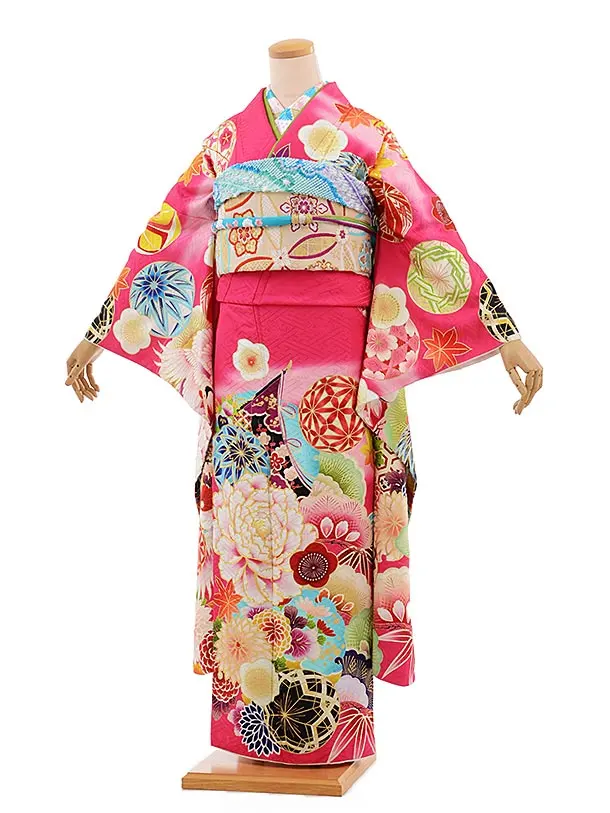 振袖レンタル1559 パープルピンク 鞠に牡丹